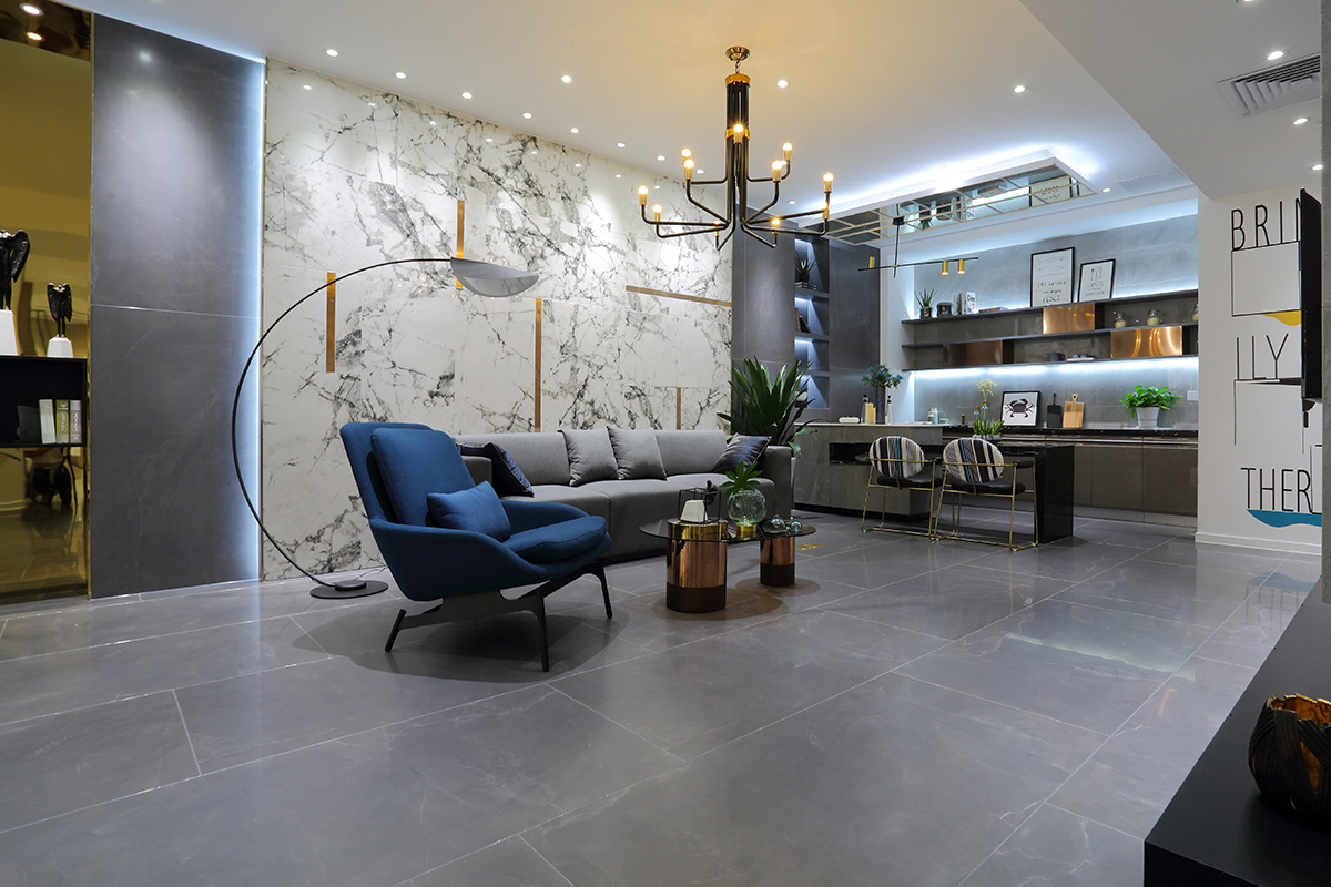 以“高端美学空间”为主旨,融合瓷砖与墙地饰面板