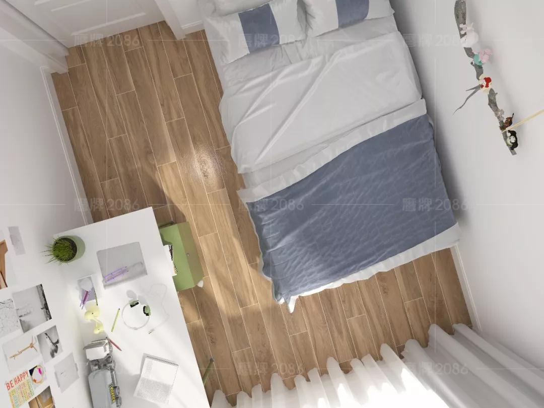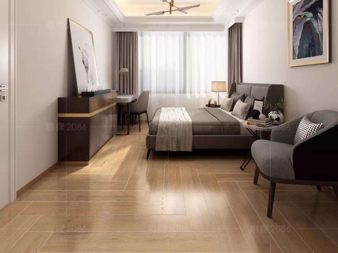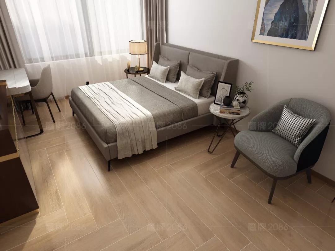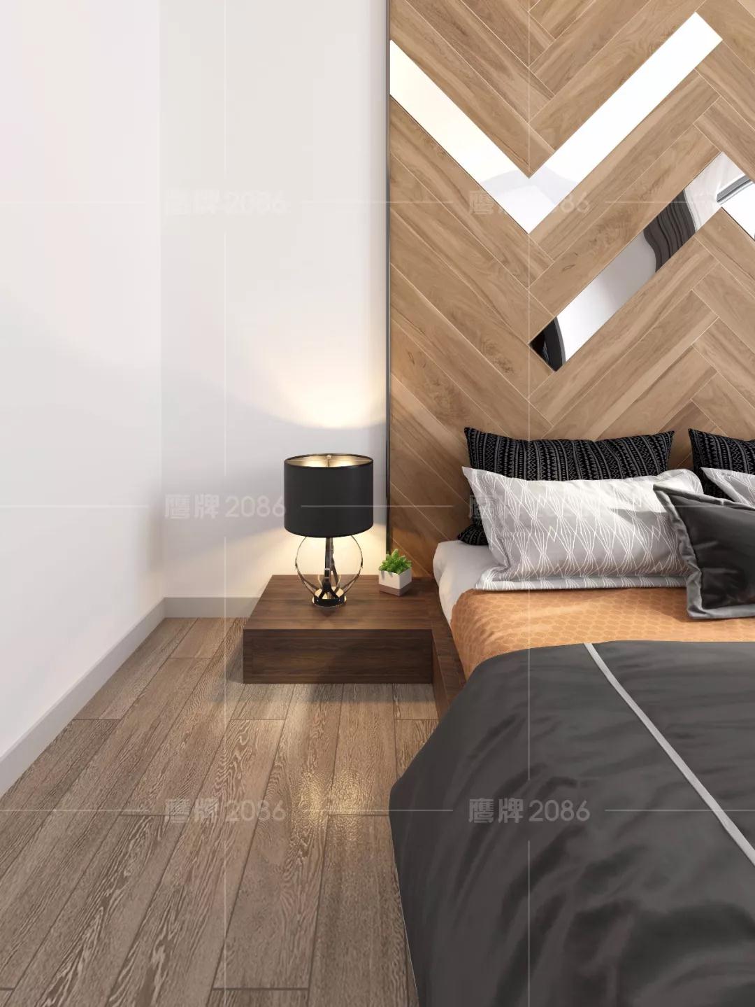 木纹砖与卧室是天生一对,除了拥有原木的质感、逼真的纹理、自然的温暖之外,同时比原木更好打理、更防滑、更耐用。木纹砖与镜子组合的背景设计,自然与现代摩登的交织,仿若一场森林中的迷失,在梦境与现实间寻找想要的安宁。