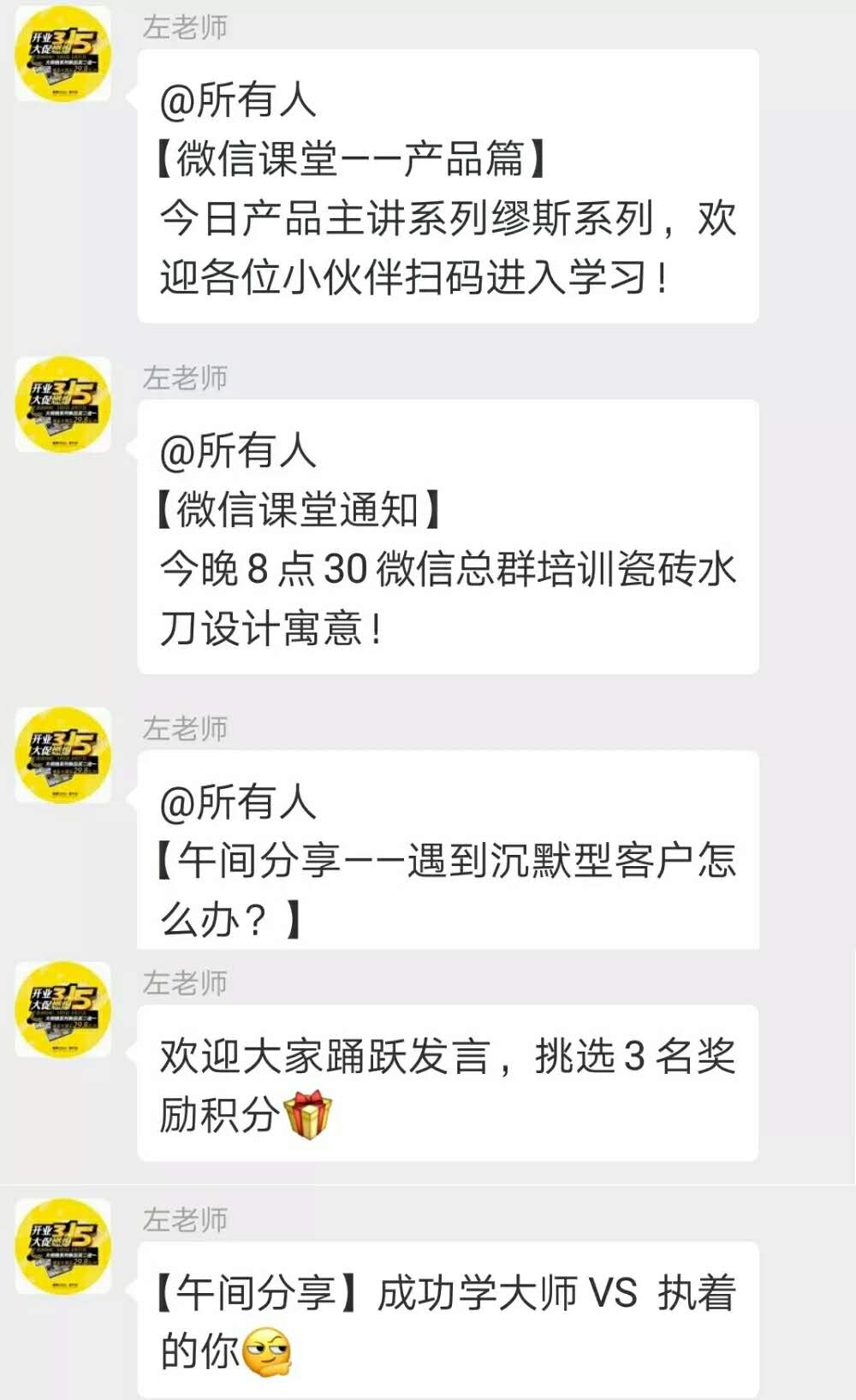 我们店的一个客户,她喜欢其他品牌的一款大理石瓷砖,但经过我每天打电话,发微信视频跟她介绍,包括我们的品牌保障、产品设计理念、空间搭配效果等等,然后为她一一介绍活动内容,让顾客买到自己最心仪的东西,她心里非常开心,订单就这么成功了。