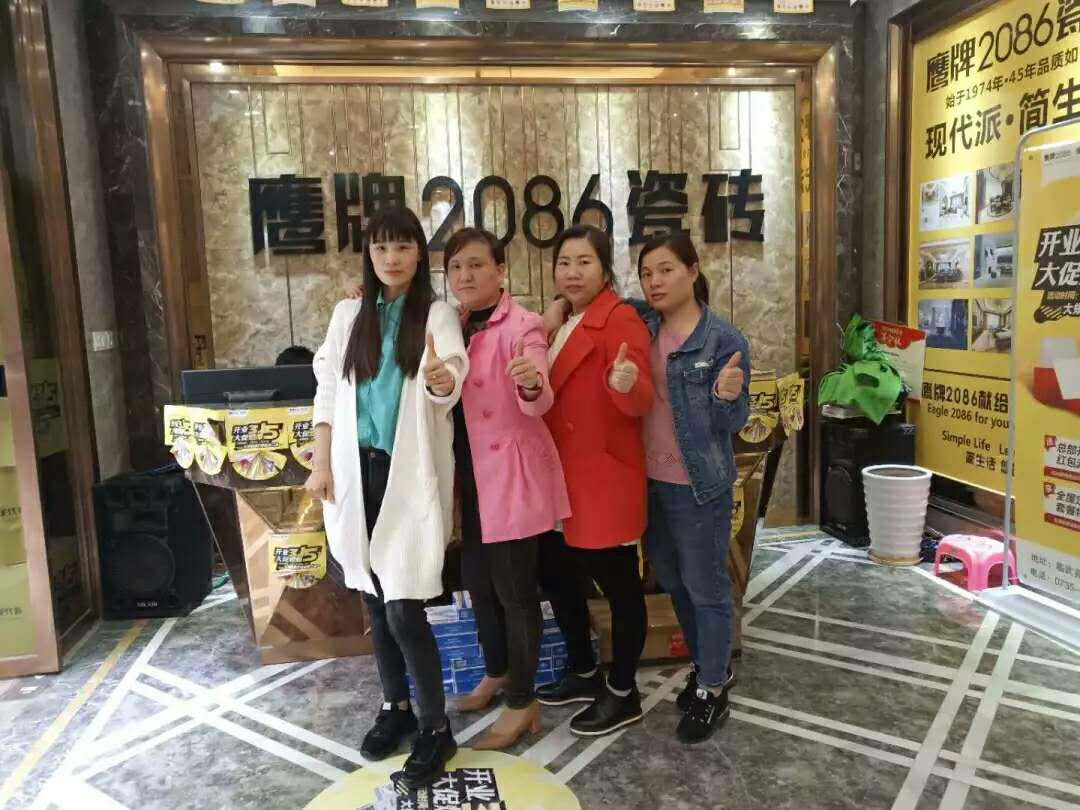 陆军道县店3月26号接待了一名客户,她原本在其他品牌交了600块钱定金,又来我们店看上了类似于同款相近的砖。经过我们团队一系列讲解:对比花色,工艺纹路的自然清晰度,最后认准我们的品牌下了定金。这次活动让我们学到了很多知识,感谢鹰牌2086总部的大力支持!