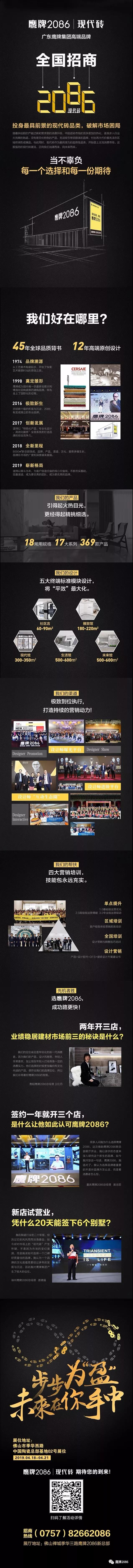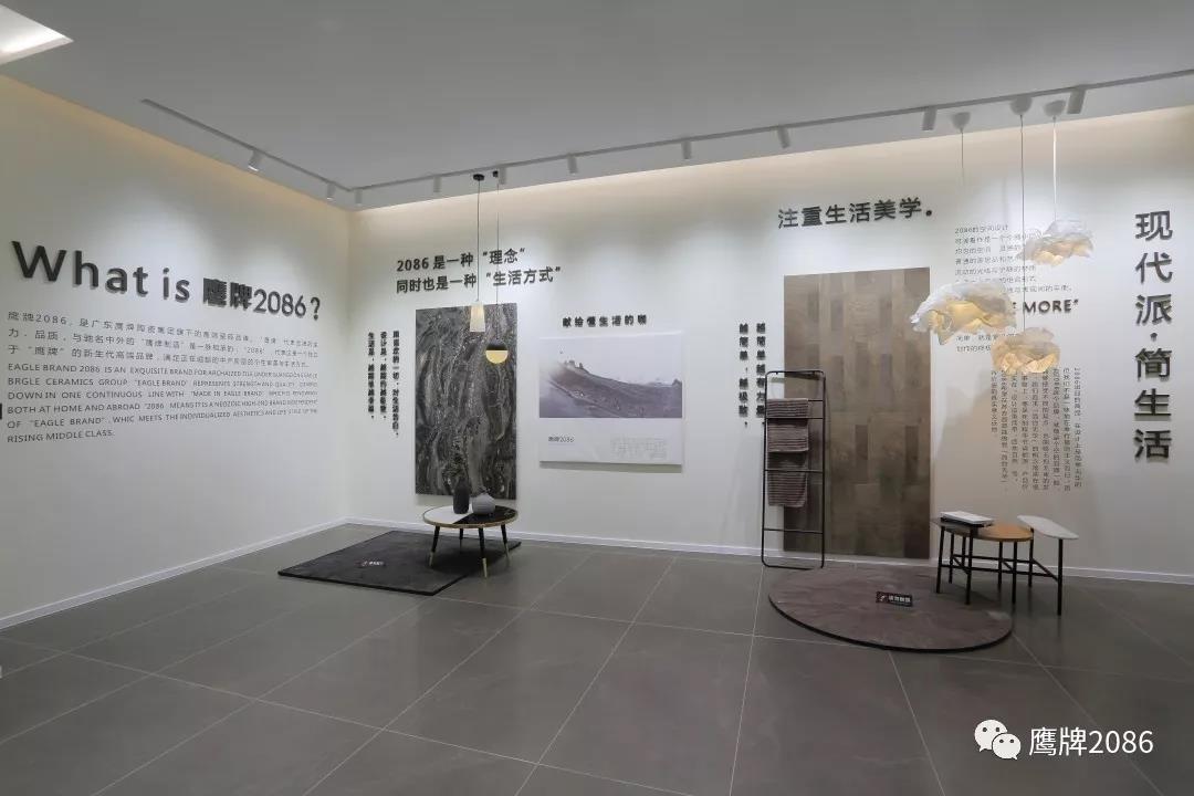 鹰牌2086总部展厅于2018年8月正式开业,首次开放当天吸引了行业各界人士及50多家媒体到现场参观。总面积约8000㎡的新展厅,成为了目前佛山规模首屈一指的现代砖品牌展厅。