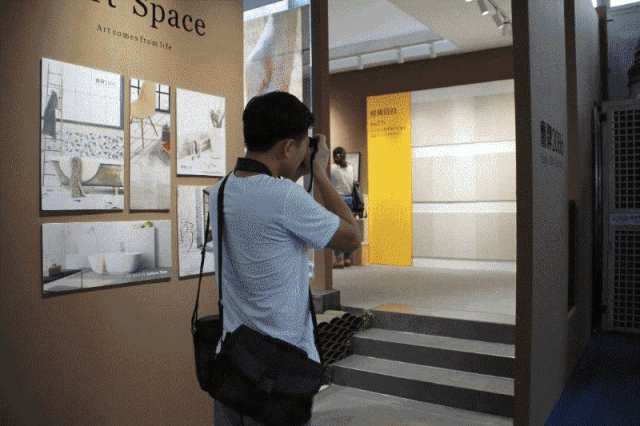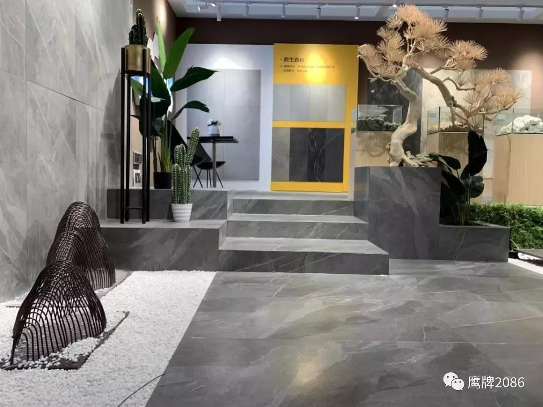 位于中国陶瓷总部基地展馆02号展位的鹰牌2086占据会场出入口绝对的C位。虽然是工程集采展示馆,但是别具匠心的展位设计,吸引了许多参观者。
