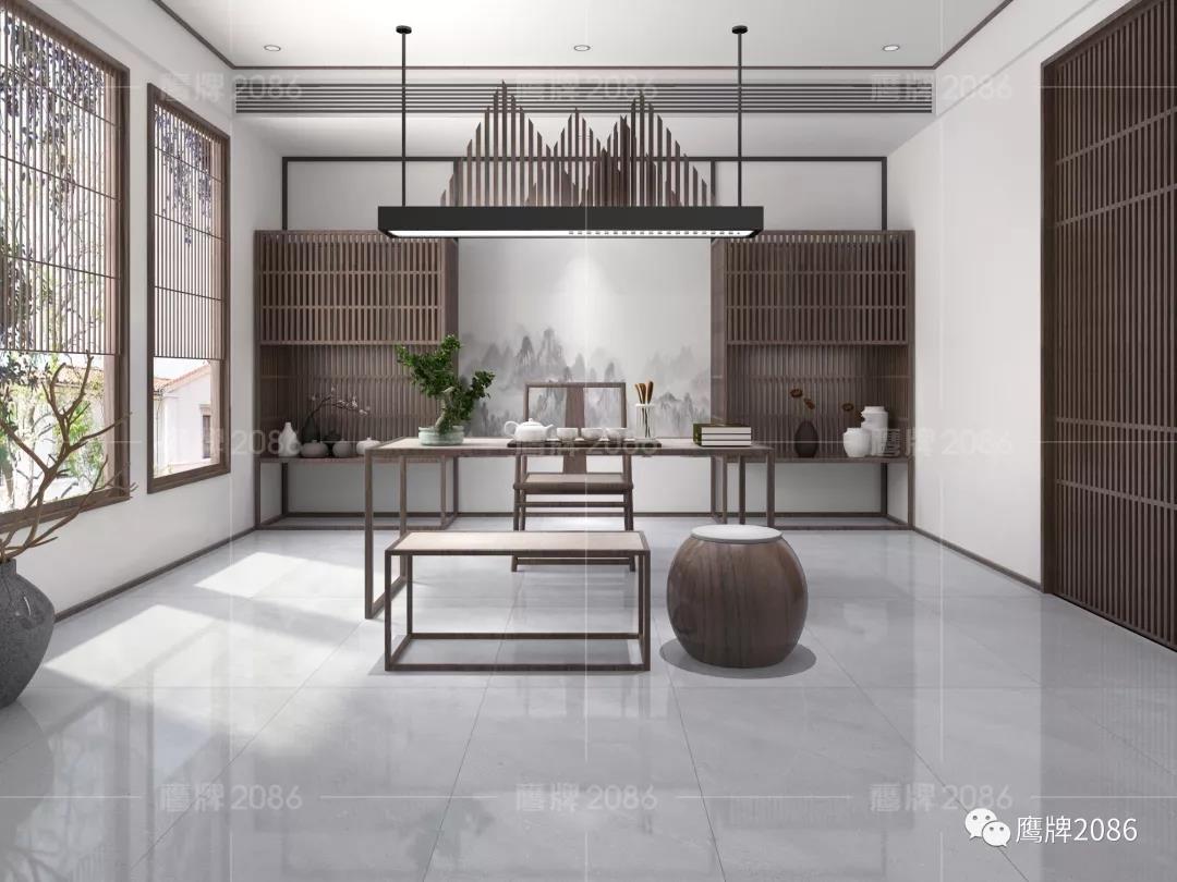 经过鹰牌2086研发团队的打造,最终水墨京砖以宫殿京砖为蓝本打造模具,传承经典京砖之魂,将其演绎成为复古与现代相结合的空间面料,广泛应用于餐厅、茶室、书房、商业空间、过道等区域。