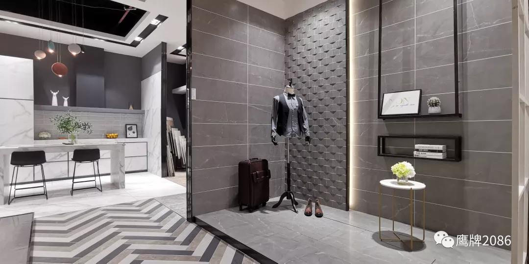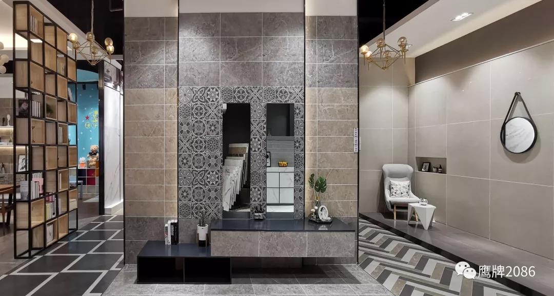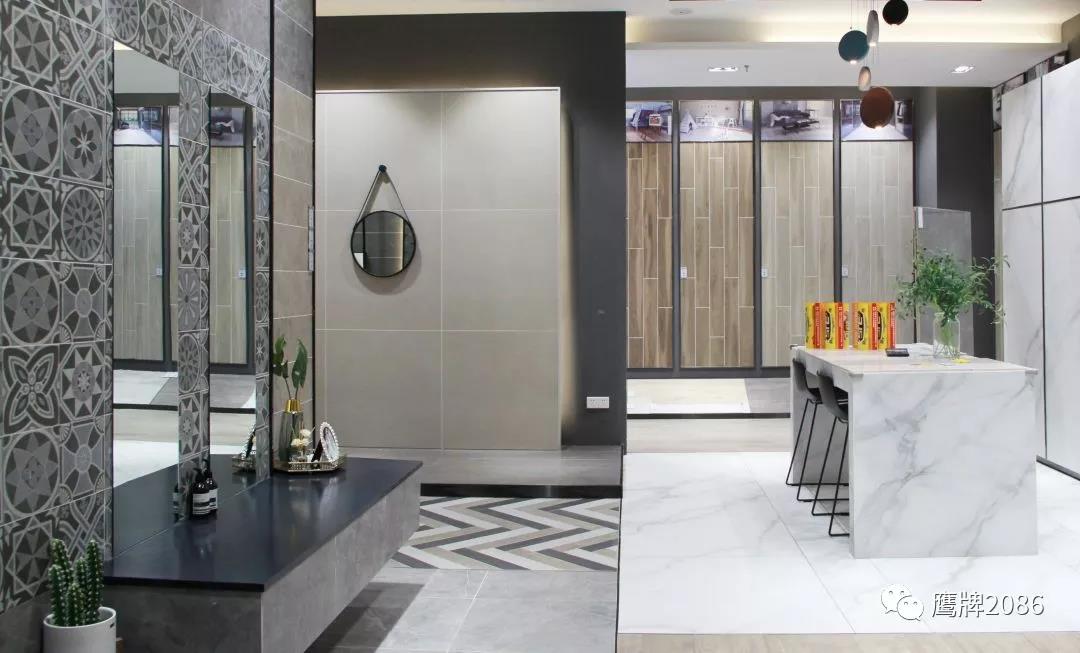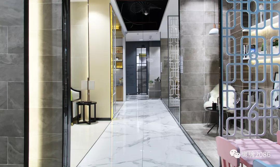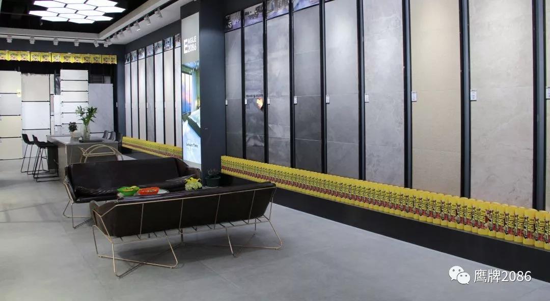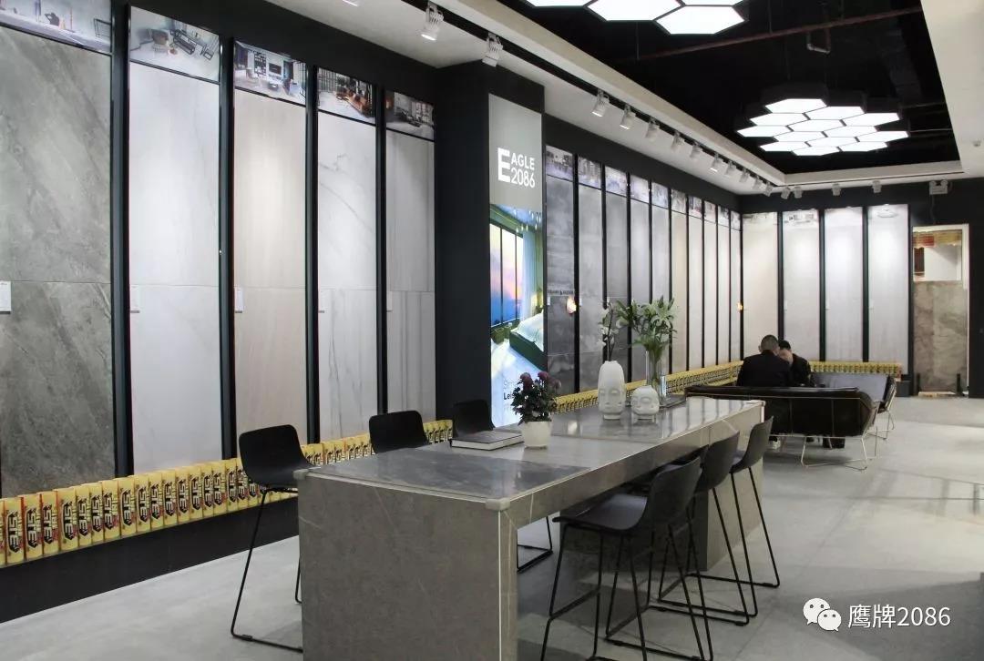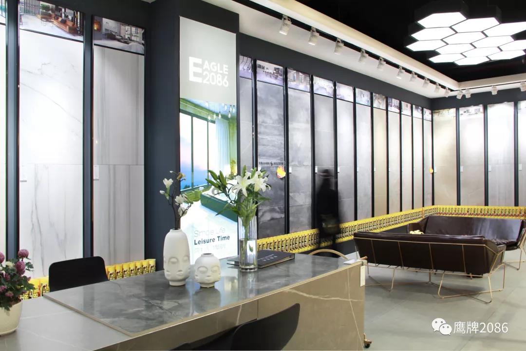 鹰牌2086贵阳展厅位于本地知名家具城——西南国际家居装饰博览城国际精品陶瓷馆,面积300多平米,展厅设计现代简约,时尚大气,承载着品牌、产品、营销和服务等多重功能,吸引众多年轻消费者的挑剔眼光,完整的品牌形象展示,品牌元素的空间运用,传达鹰牌2086现代、年轻、设计、未来等极具流行的品牌性格。