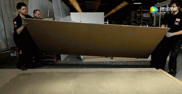将刷浆完成的大板瓷砖轻轻的移动至刷浆完成的基面进行黏合,注意大板瓷砖与基面黏合时一定要调整好角度,在多人协同合作的情况之下,一定做到相互默契配合,以免出现差错。