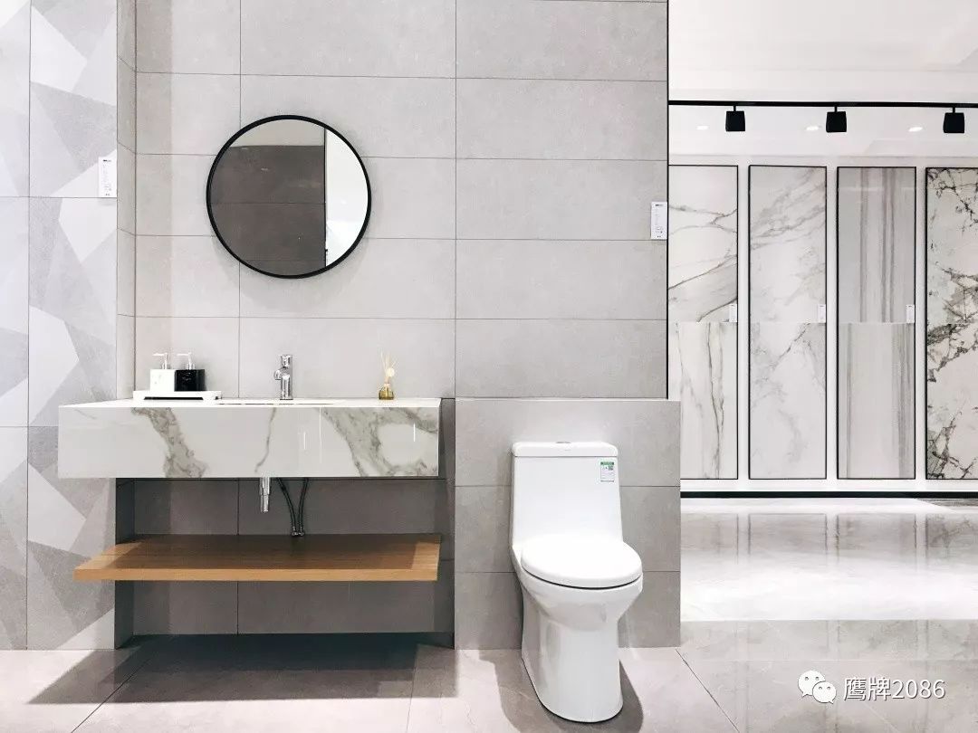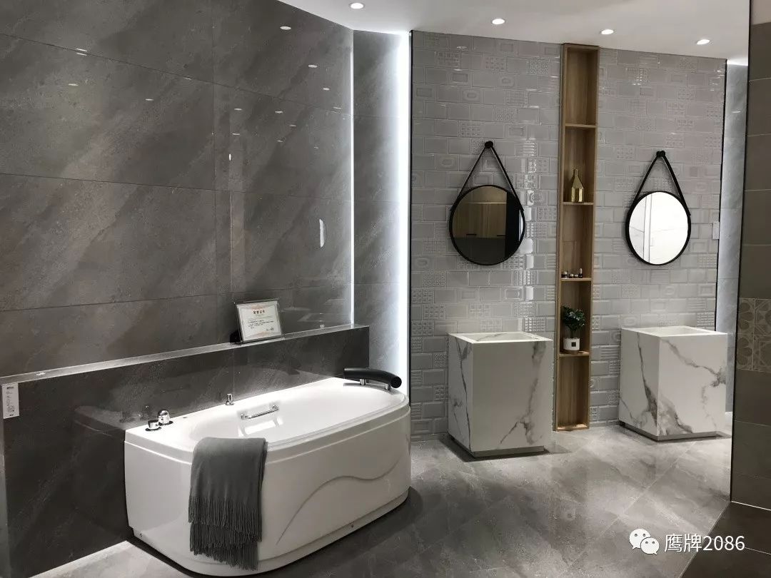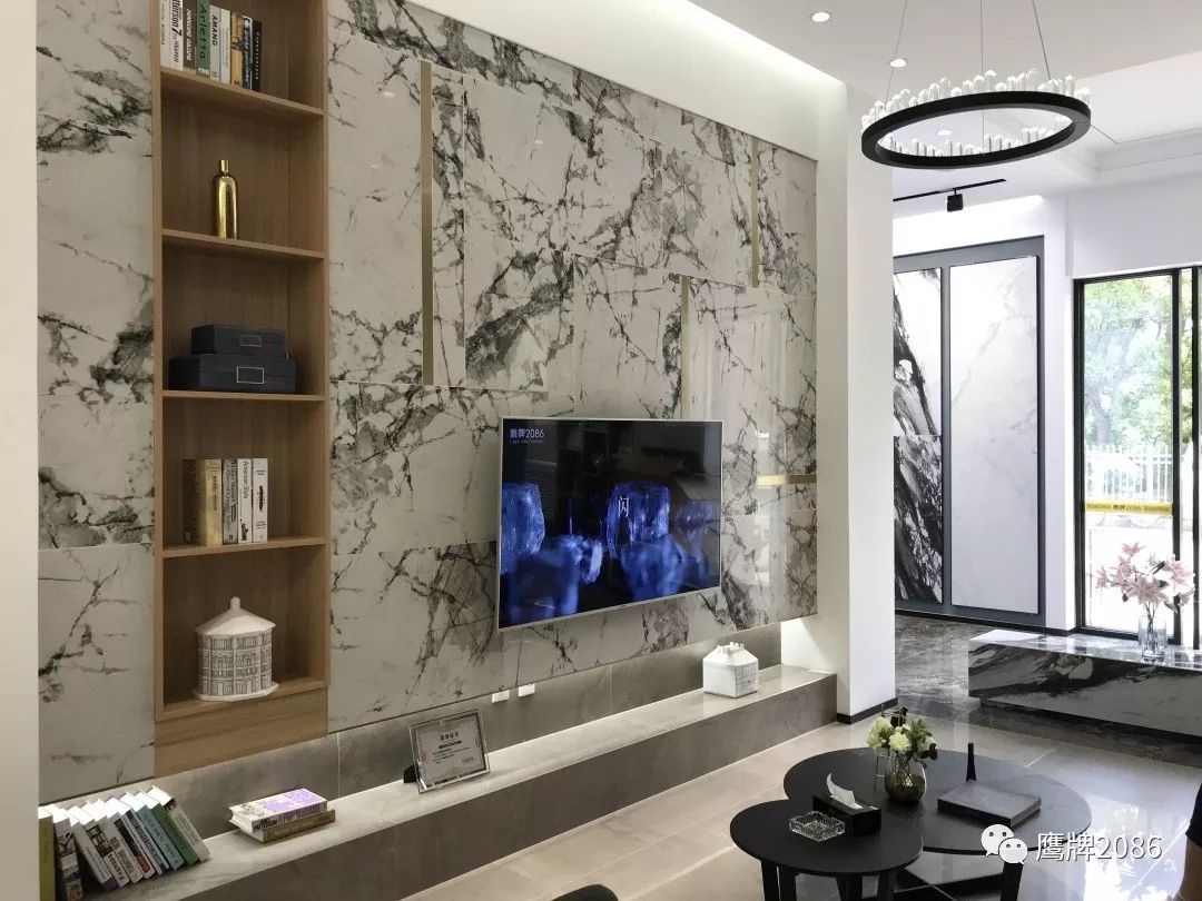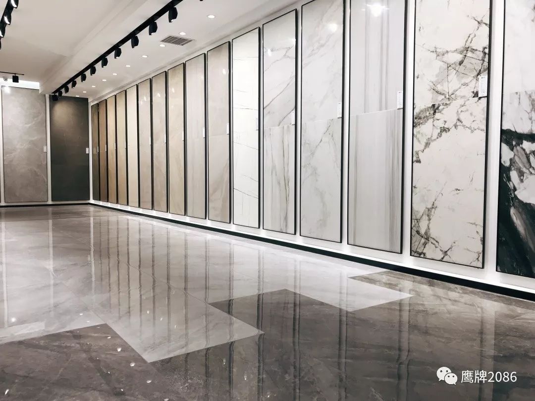 沈阳展厅共两层,总面积600㎡,一层为大板选材区和客厅样板间,二楼主要是卫浴样板间和常规规格选