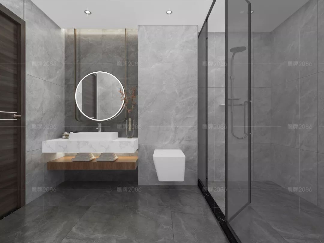 黑白灰的巧妙搭配使卫浴空间看起来清透明亮,现代砖的细腻纹理给空间增加了一丝跳动,有质感的生活,都经得起细节的考验。