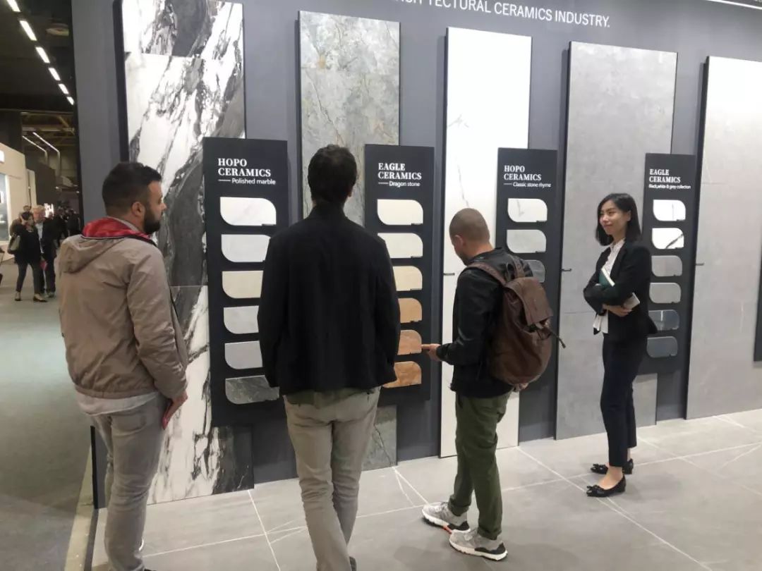今年,鹰牌2086以创新性的技术,研发了水墨京砖第二代——收藏级京砖,产品首次亮相展会,吸引了众多国际买家和设计师的关注。