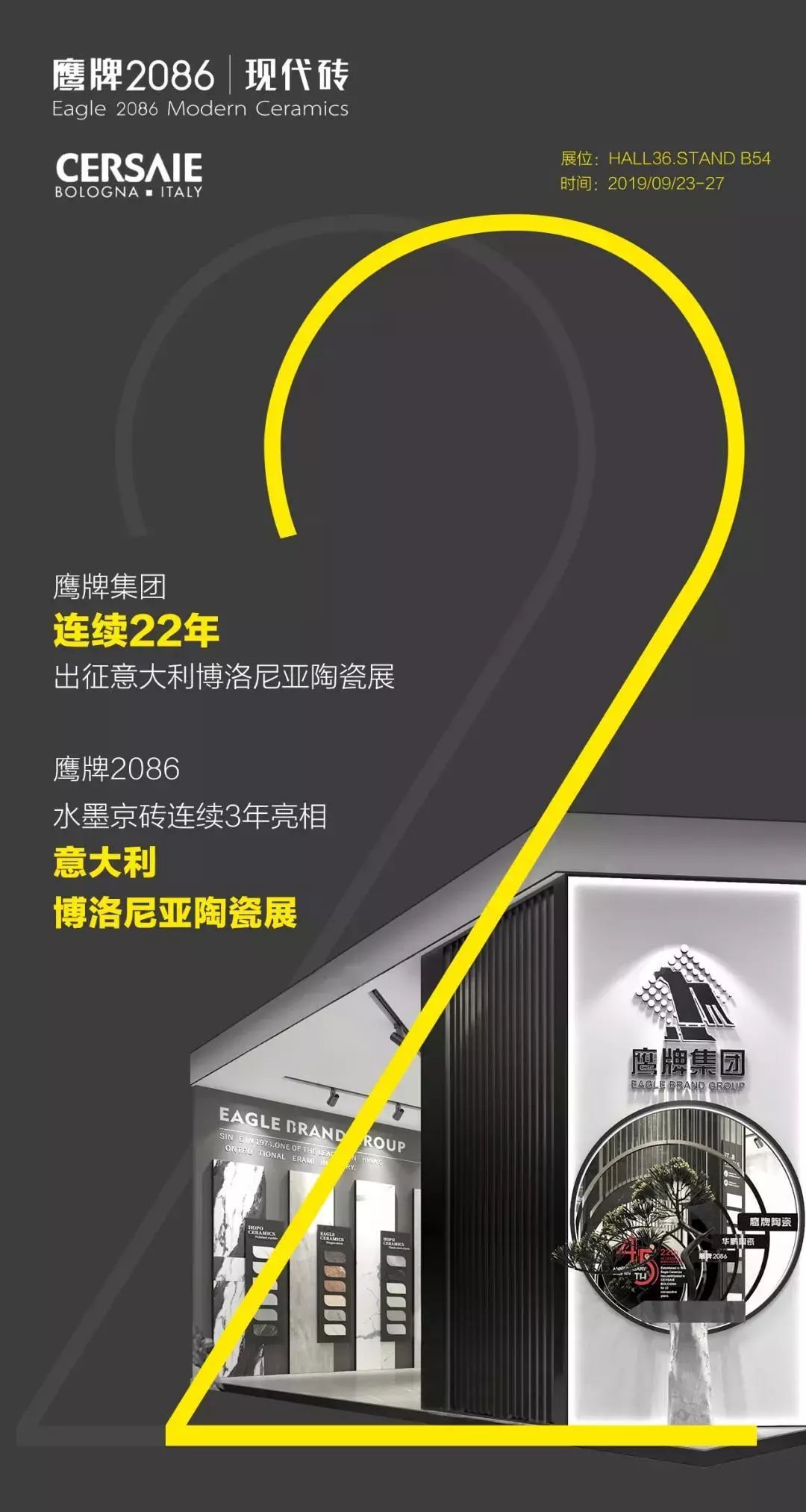 2019年,鹰牌集团已经连续参展22个年头,鹰牌2086此次也是第3次亮相意大利博洛尼亚陶瓷展。