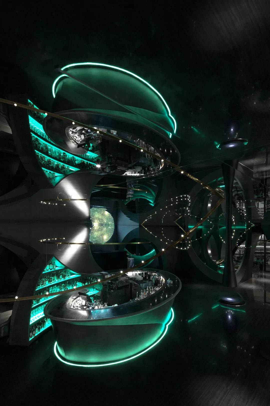 设计师通过原始洞穴的构景,将人与空间,空间与空间之间的界面关系显像化,重建了文明秩序诞生之前的娱乐与交流场域。洞穴的创造,结合球体和墙壁,是整个空间的基本界面。设计使人与空间、空间与空间的关系既独立又相互渗透。