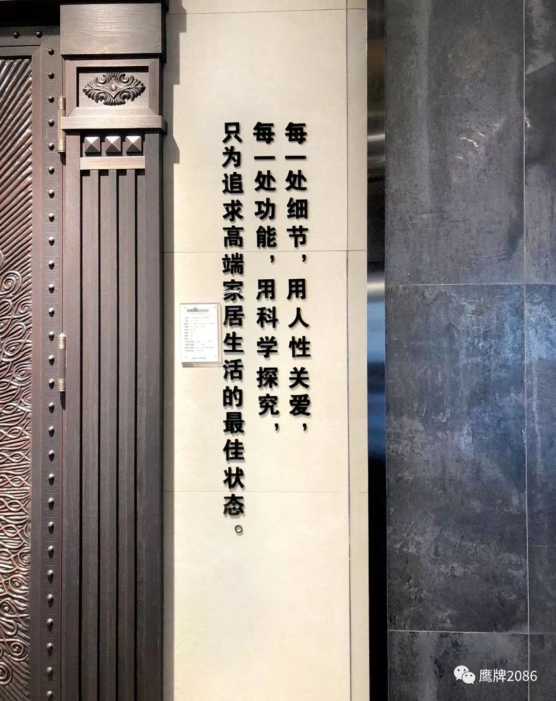 高度一致的品牌理念,让湖南邵阳雅居乐国际名门馆选择了鹰牌2086,对文化的传承,对细节的追求,对人性的关怀,对生活的热爱,共同呈现高端家居空间的生活质感。