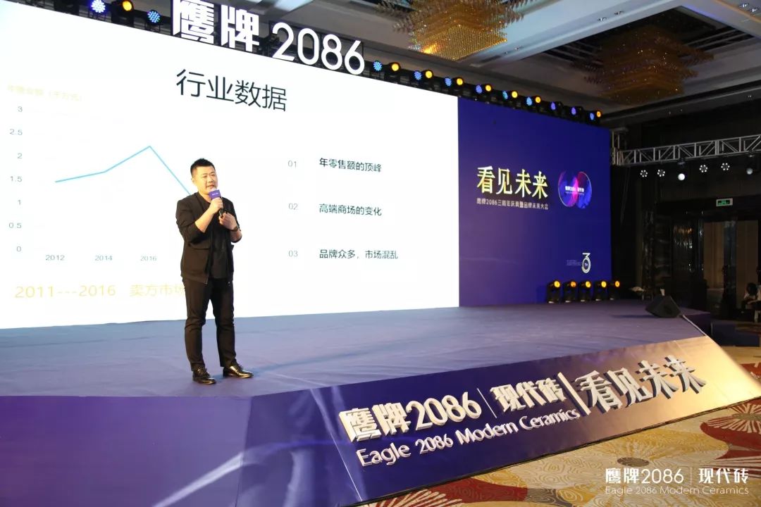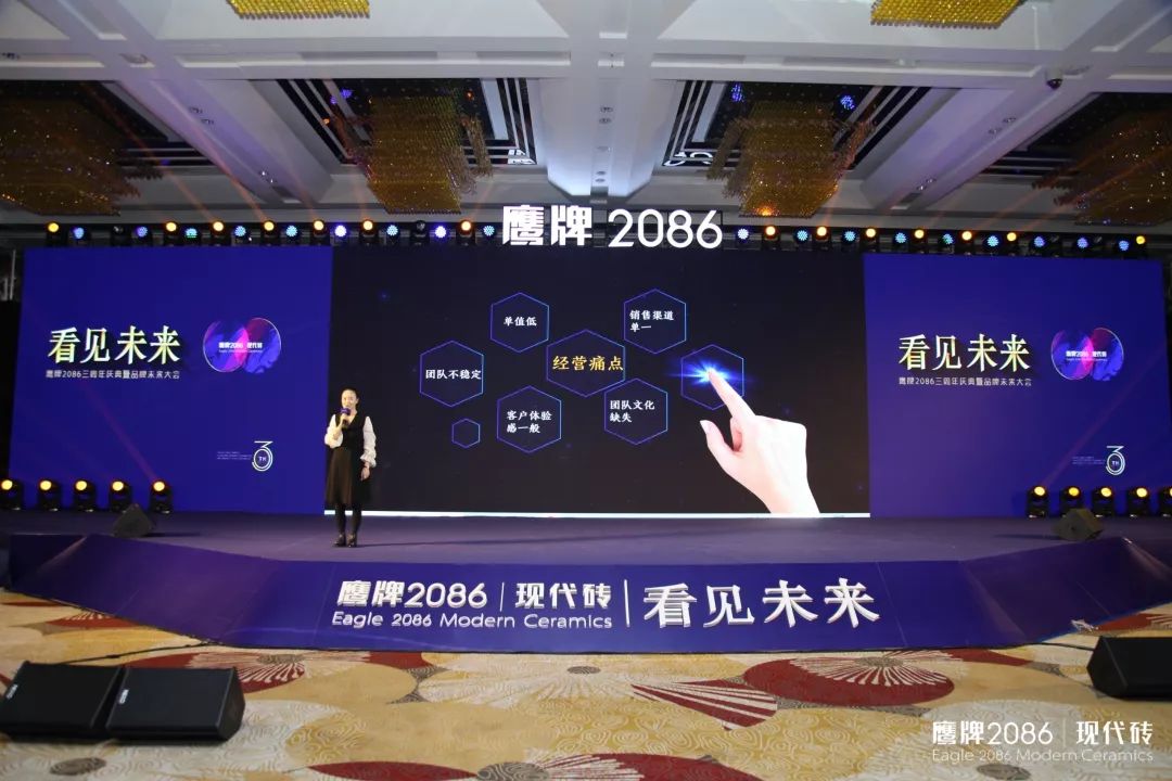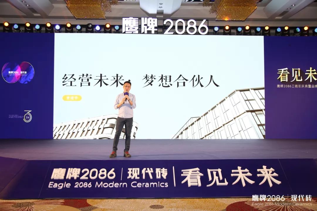 广东鹰牌陶瓷集团副总裁陈贤伟以风趣幽默的演讲风格,分享集团对鹰牌2086的战略布局及未来期许,在分享的最后,陈总更以一句“鹰牌2086离2086年还有67年”结束,振奋人心。鹰牌2086三周年,我们一起看见未来,看见2086!