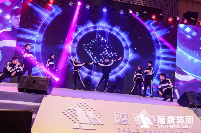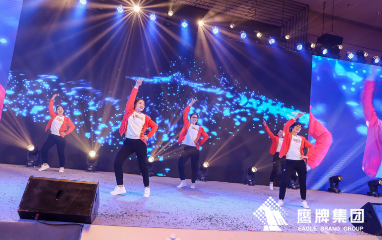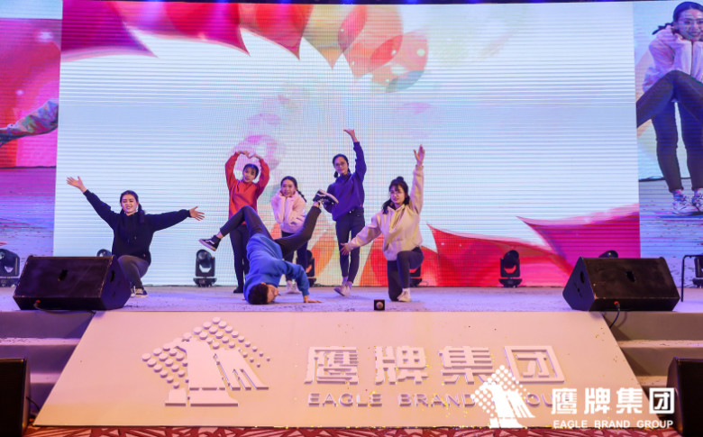 鹰牌营销中心的劲爆歌舞串烧为2020鹰牌春晚揭开第一个篇章,帅哥美女们的劲歌热舞瞬间把春晚现场点燃。