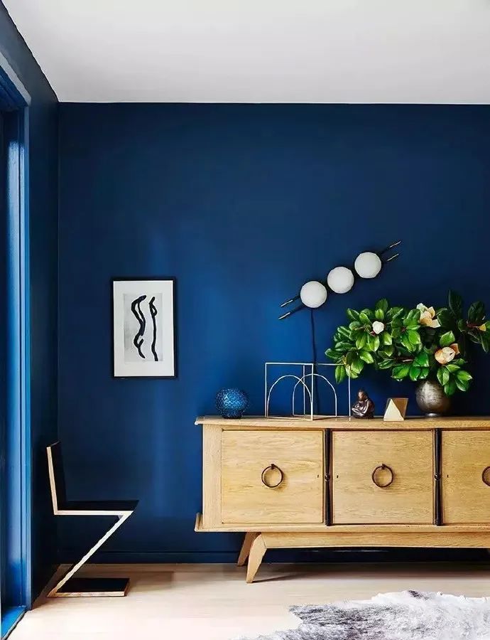 一抹蓝色的墙面,营造沉稳豁达的空间氛围,给人冷静理智的暗示,既可以消除身心疲惫感,也能帮助我们抚平精神上的焦虑与躁动。