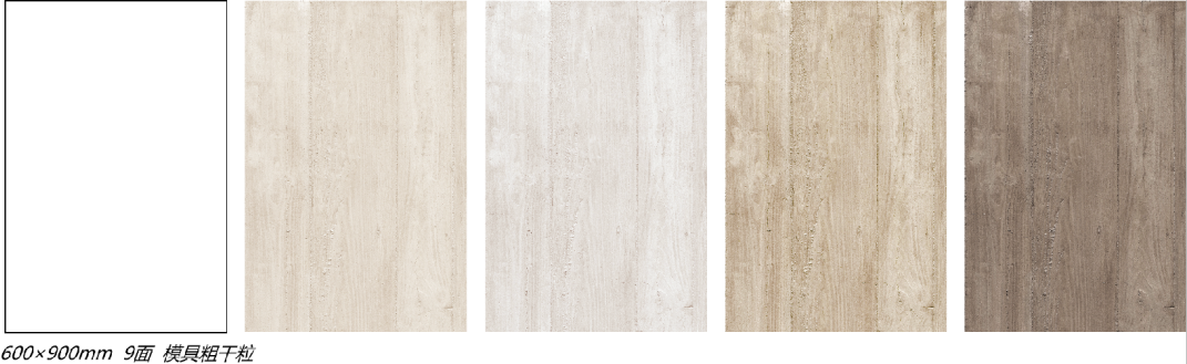 模具粗干粒 | 用独特的专属模具塑造“骨相”,搭配粗干粒半抛技术,两者结合可使木纹砖表面凹凸有致,呈现独特的颗粒质感。