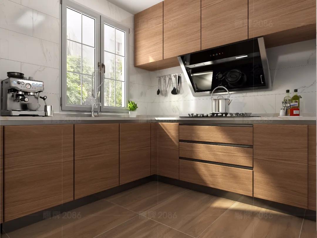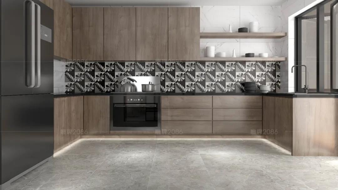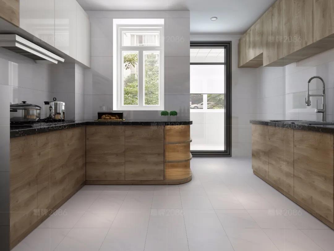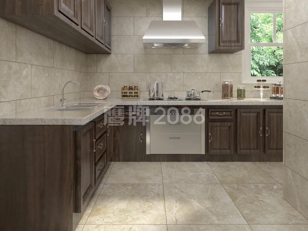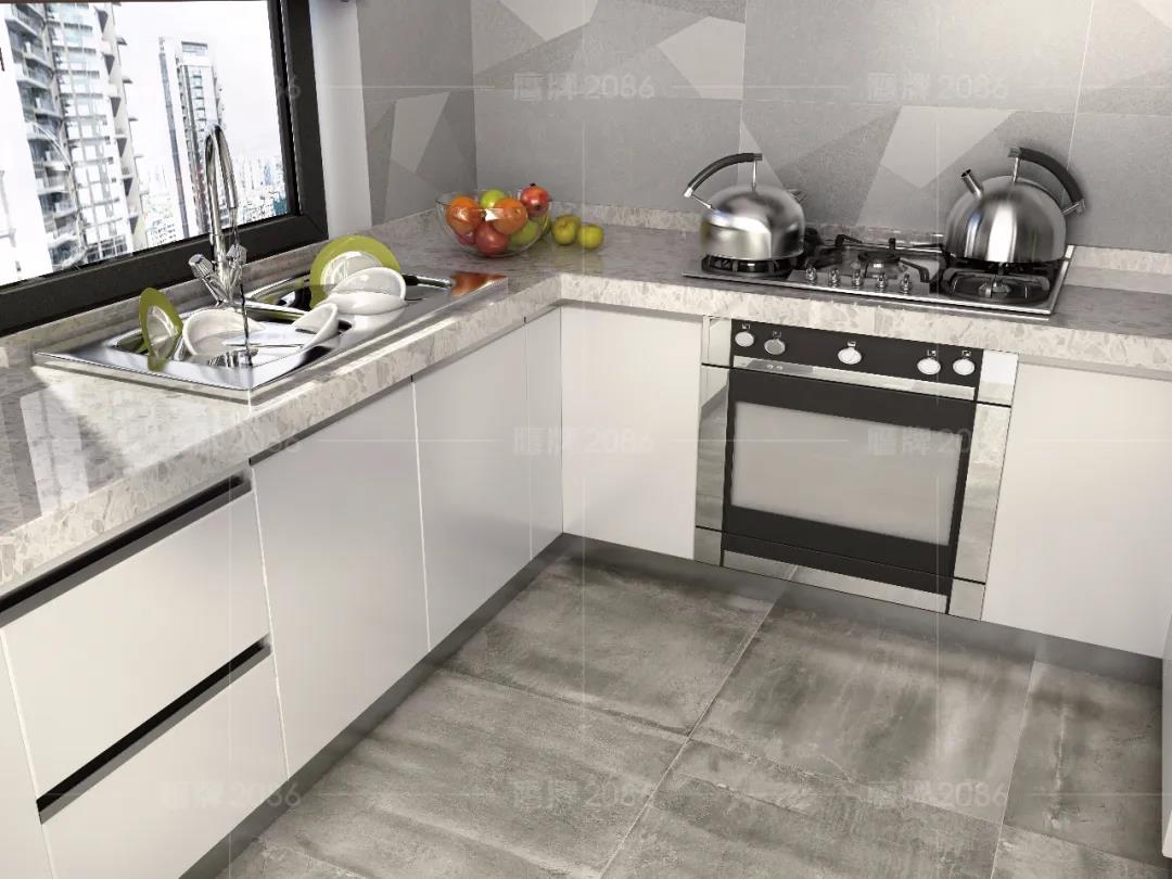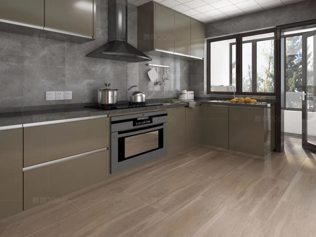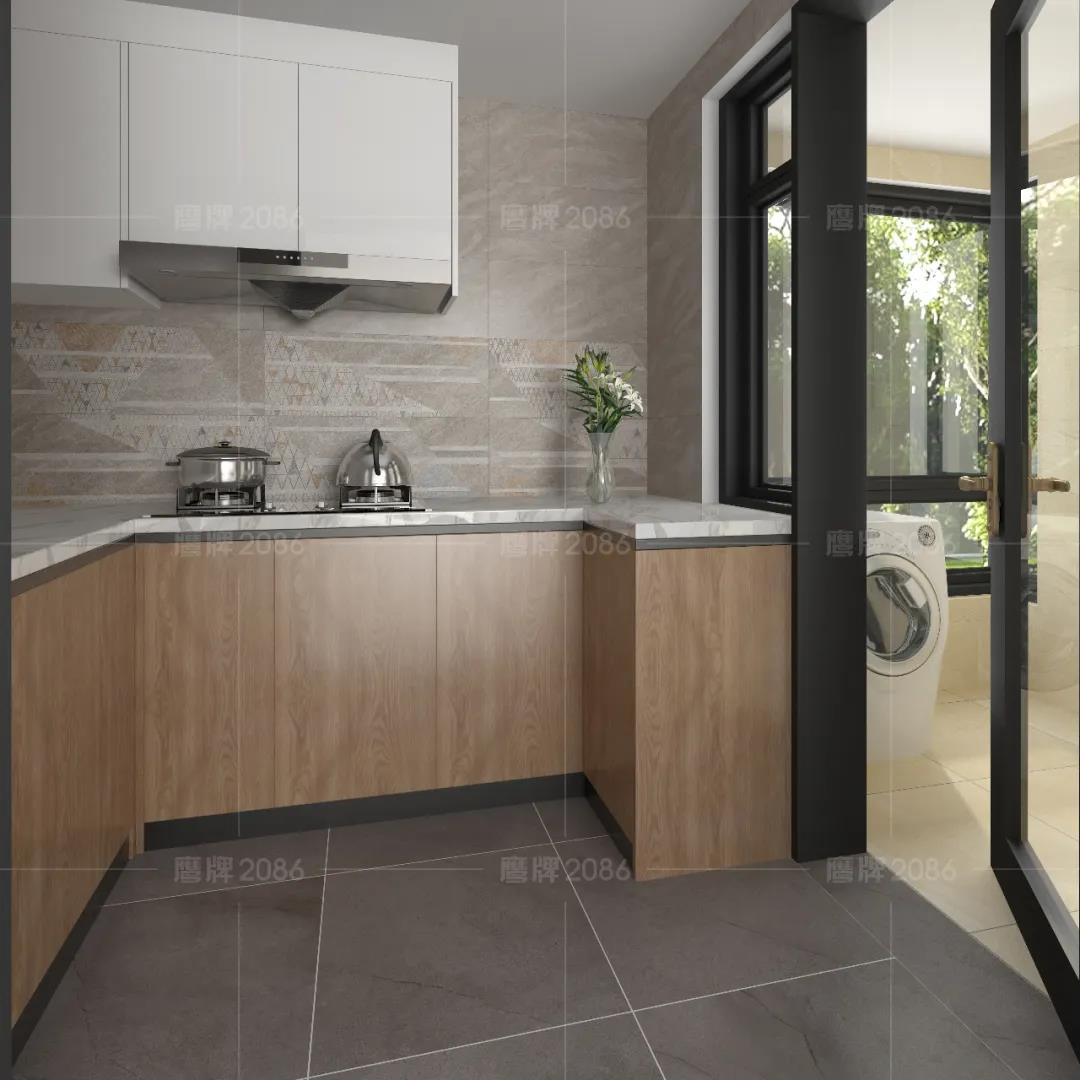 厨房作为水渍油污“重灾区”,厨房用砖一定要功能过关,可以选用专业的厨卫砖,防水防污更耐磨,方便打理。