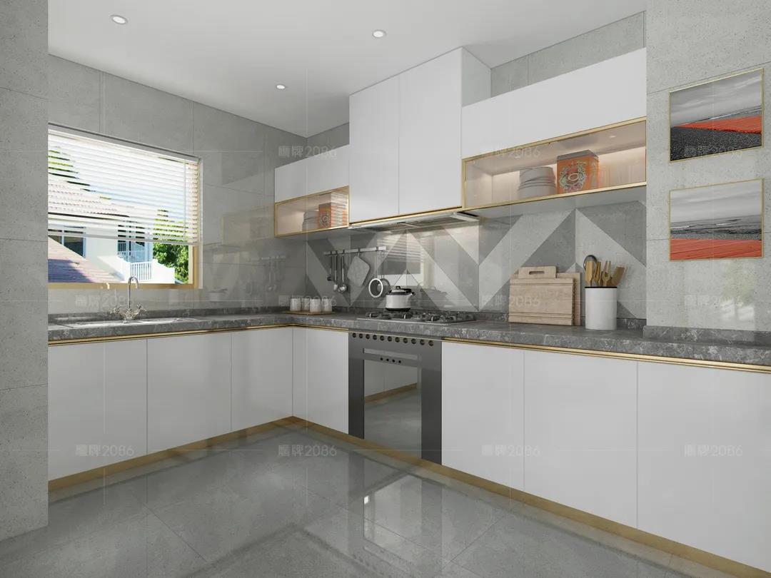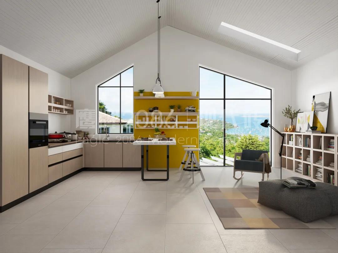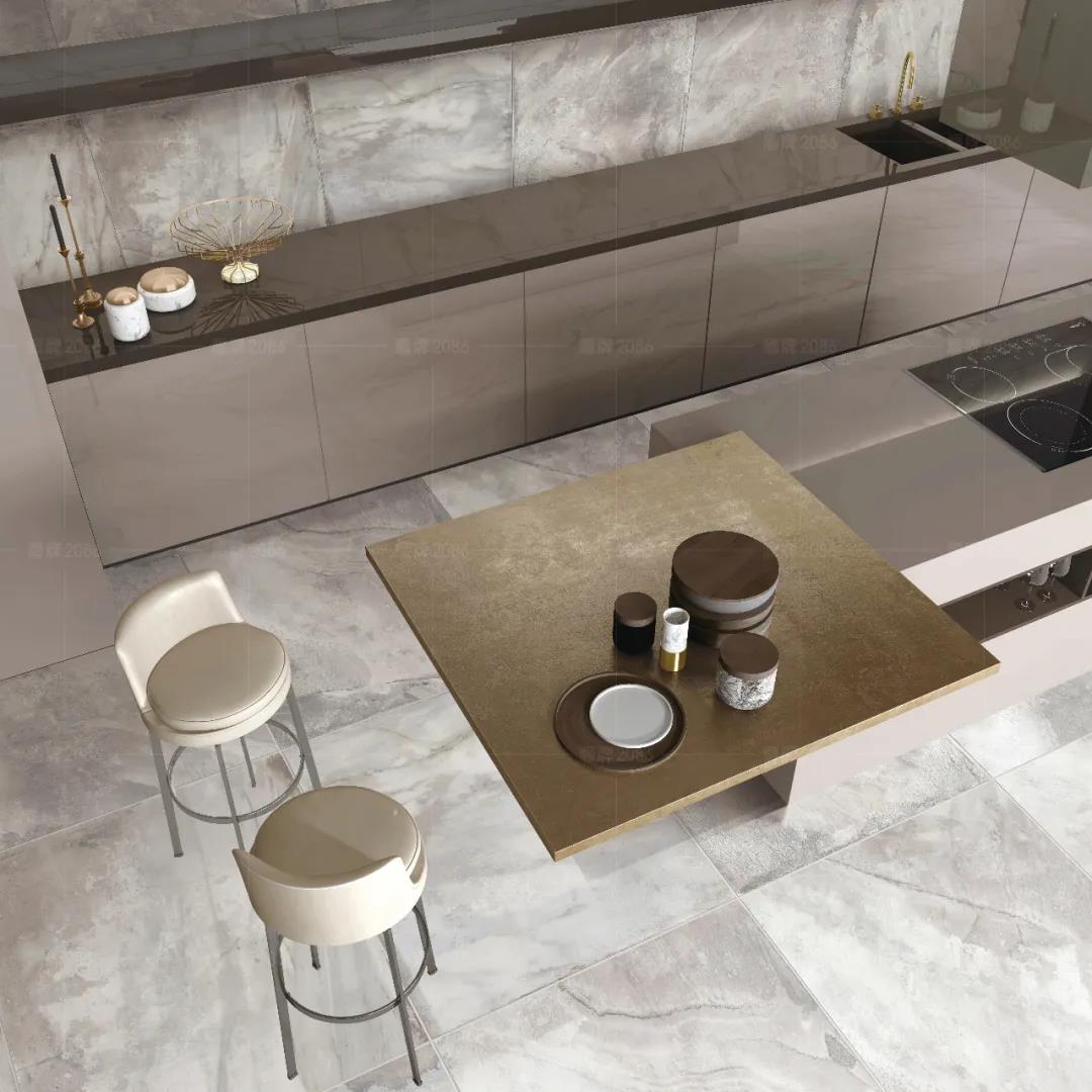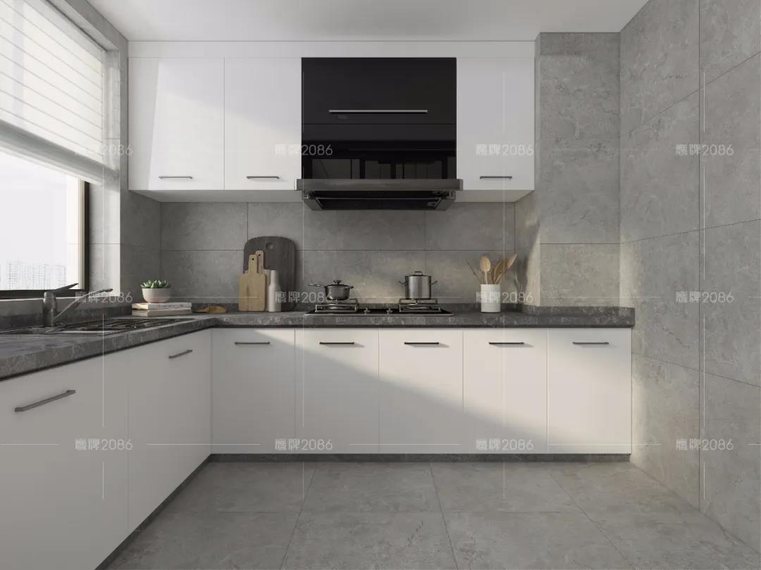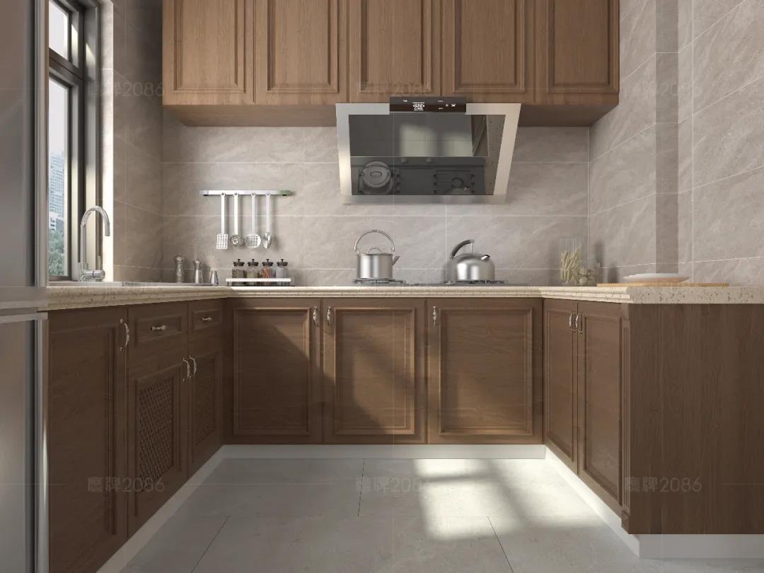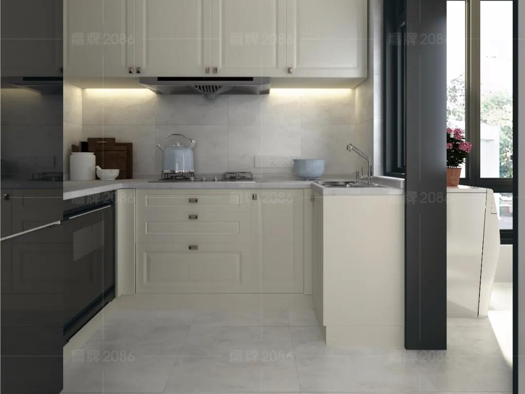 厨房作为水渍油污“重灾区”,厨房用砖一定要功能过关,可以选用专业的厨卫砖,防水防污更耐磨,方便打理。