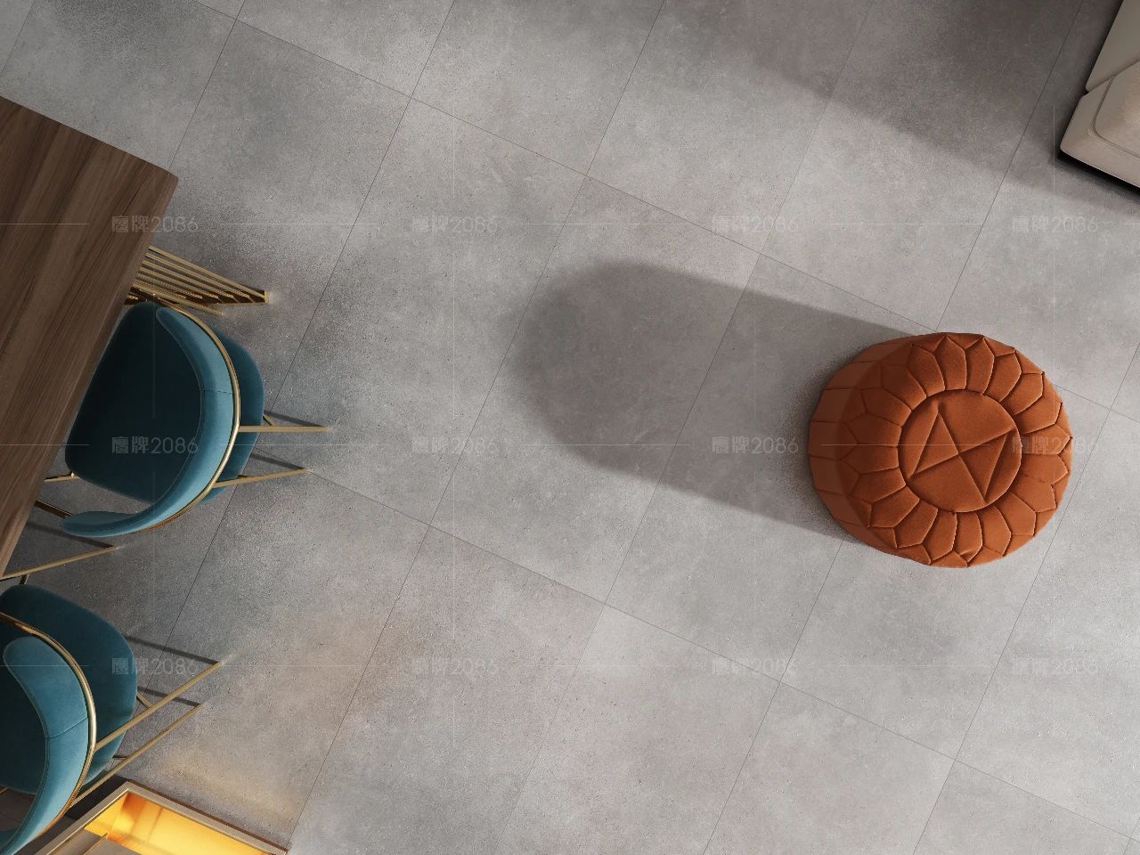 客餐厅运用大面积的简洁灰色调地砖,搭配木色软装装饰,点缀明快鲜艳的橙色,营造家居空间的温暖氛围。