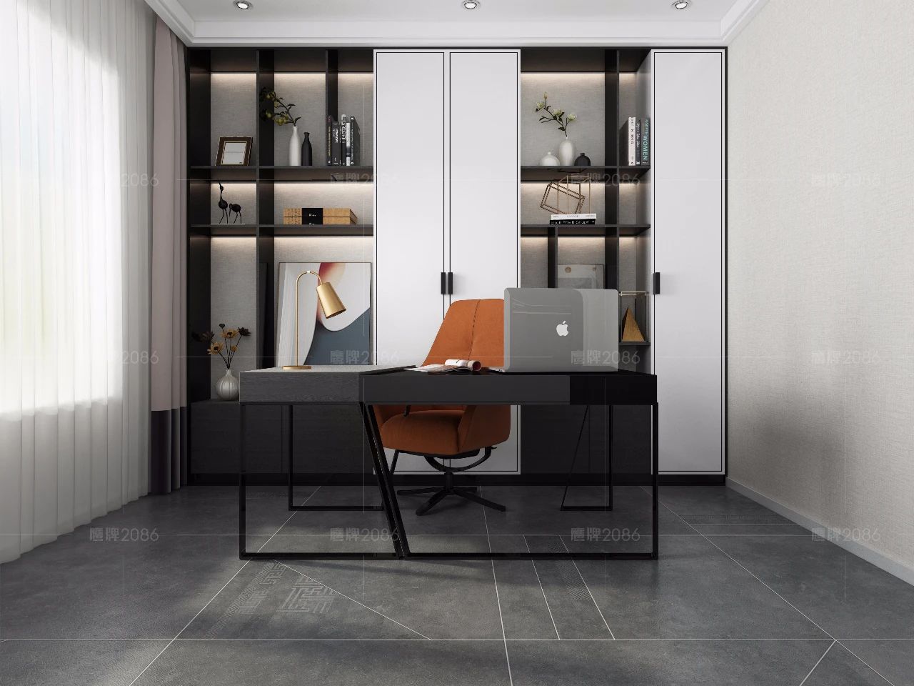 书房以黑白灰为主调,橙色的点缀为空间注入活力,历史文化感的水墨京砖,禅意宁静的一室书香,让人静心办公阅读。