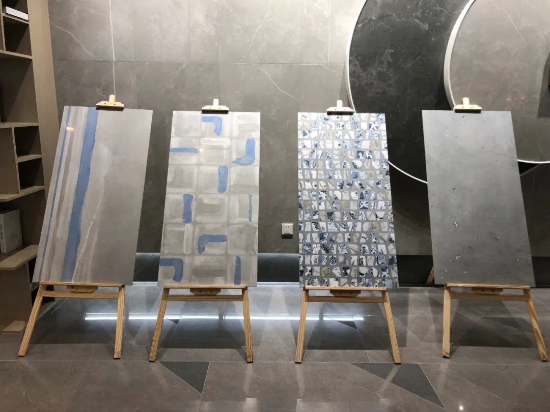 “意象青花”系列的设计灵感则取自青花瓷,将青花瓷的碎片融入水泥质感。工艺上,使用3D高清喷墨设备,12道喷墨生产通道,发色更完全,层次更自然;质感上,多重工艺复合叠加,粗干粒、青花专用干粒,表面质感更细腻;光泽度上,使用柔性软磨抛釉,单点光泽度闪亮,整体视觉柔和,亮而不炫目。
