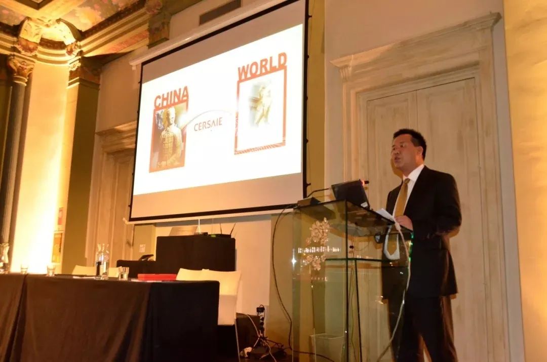 ▲2012年鹰牌集团总裁林伟在意大利发表演讲