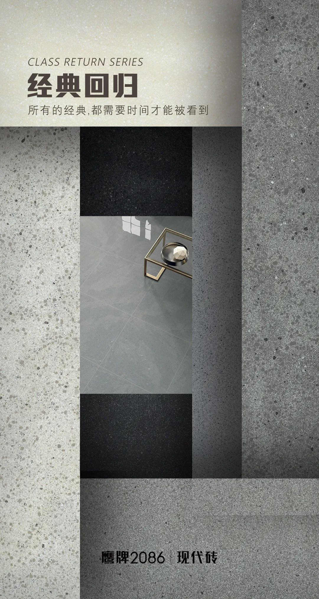 1995年,鹰牌首创大颗粒仿石砖,掀起行业大颗粒砖潮流,产品占据当时市场的半壁江山。风靡一时的经典颗粒砖在市场的变幻中不断推陈出新,经过三代的进化,在设备更新、工艺更新、色系更新的基础上,以大颗粒抛光砖的创新理念重新回归人们视野,成为鹰牌的标志性产品——「经典回归」。