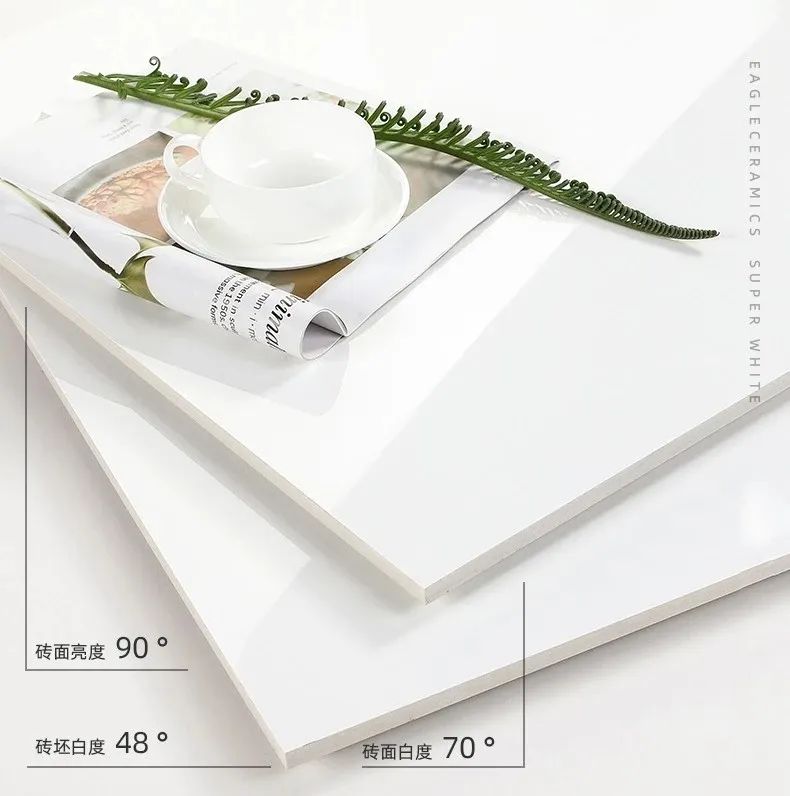 鹰牌2086“女神”超白砖,设计源于意大利卡拉拉小镇的“卡拉拉白”大理石,选用新型材料无锆增白剂,达到了砖面70°,砖坯50°的超高白度,还原“卡拉拉白”大理石的纯净之美。