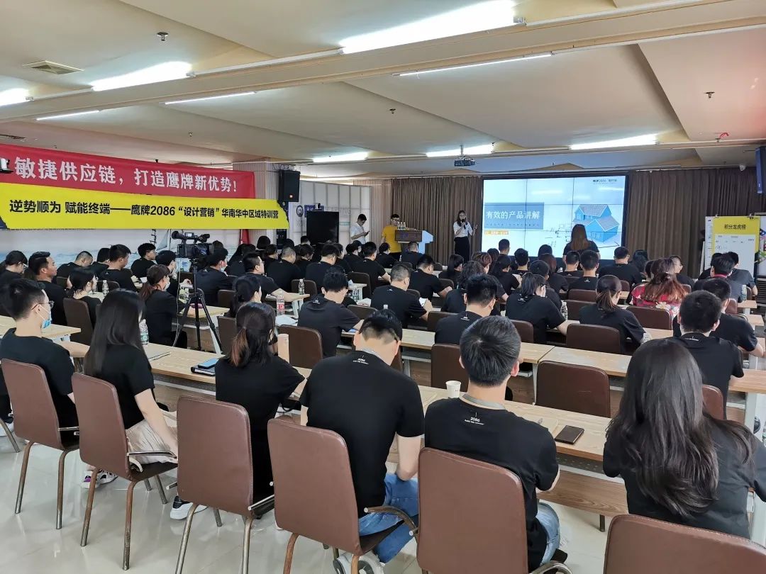 专注设计营销,抢占用户心智。本次培训还邀请鹰牌2086总部设计部——资深设计师周丽莹和首席设计师彭帅,为大家开启了一场超实用的设计营销课。周丽莹讲师以丰富多彩的内容讲解了如何运用鹰牌2086产品完成一个精美的家装设计,而彭帅讲师重点分享施工工艺流程及常见问题,干货满满,教你如何成为一个懂设计的营销人员!