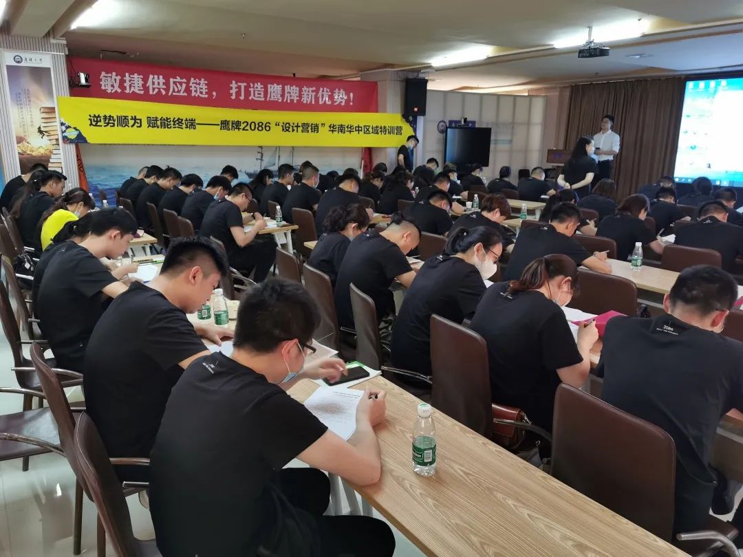 5月26-27日,鹰牌2086华南区华中区培训在佛山总部圆满举行。此次培训聚集了鹰牌2086现代砖华南区和华中区多个城市的销售精英,围绕“设计营销”主题开展课程,涵盖了团队建设、专业知识培训、销售技巧、通关考核、设计风格讲解以及三维家设计软件培训与实操等多个维度,全面提升终端店面的整体作战能力。