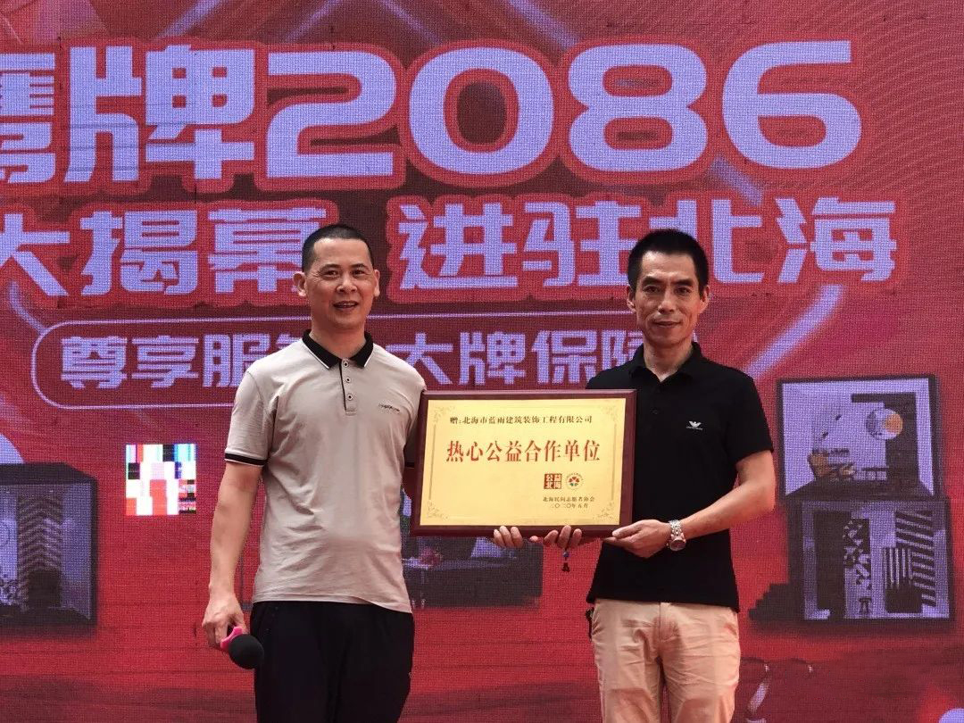 ▲《热心公益合作单位》授牌仪式,由北海民间志愿者协会代表牛振伟先生授予