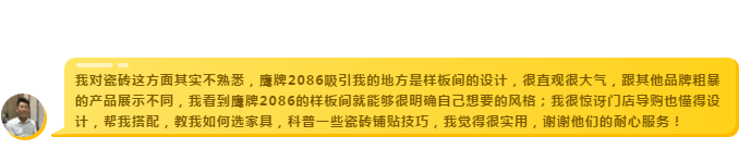 鹰牌2086专注于现代砖领域,坚持设计原创,一直以独特的设计风格引领潮流。此次北海旗舰店的降临是当地广大设计师及消费者对鹰牌2086品牌的认可,希望鹰牌2086能够在未来不断迸发原创活力,为现代砖行业的增添亮丽的一笔。