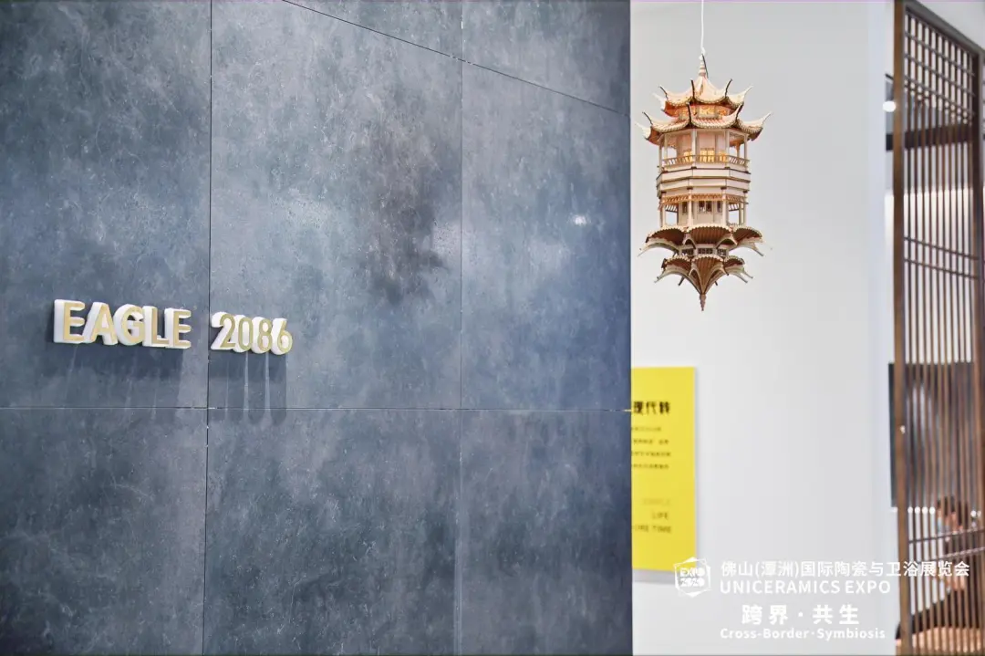鹰牌2086在5号馆——原创IP馆与法国陶瓷艺术家雅克·考夫曼联合办展,打造“水墨京砖文化馆”与“考夫曼当代陶艺展”,聚焦原创IP产品,且从不同的角度,表达传统古法金砖的历史文化和传承新生。