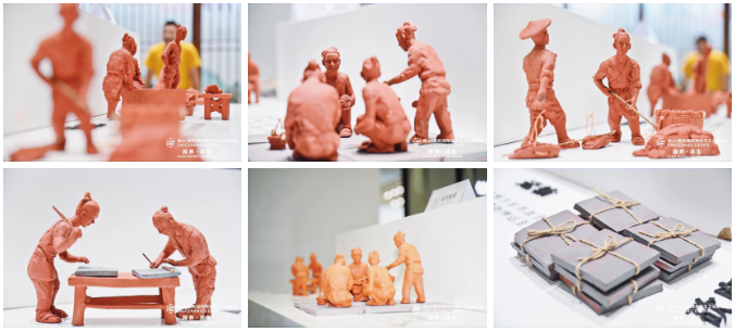 借鉴苏州御窑金砖博物馆的表现手法,在文化馆中央以故宫装置和纯手工捏制的泥人,呈现传统御窑金砖的制作工艺与流程,生动立体地展现了京砖从练泥、制坯、阴干,到烧窑、窨水、出窑等工序。传达中国文化与工匠精神的同时,独特的表现形式也吸引了观众驻足打卡。