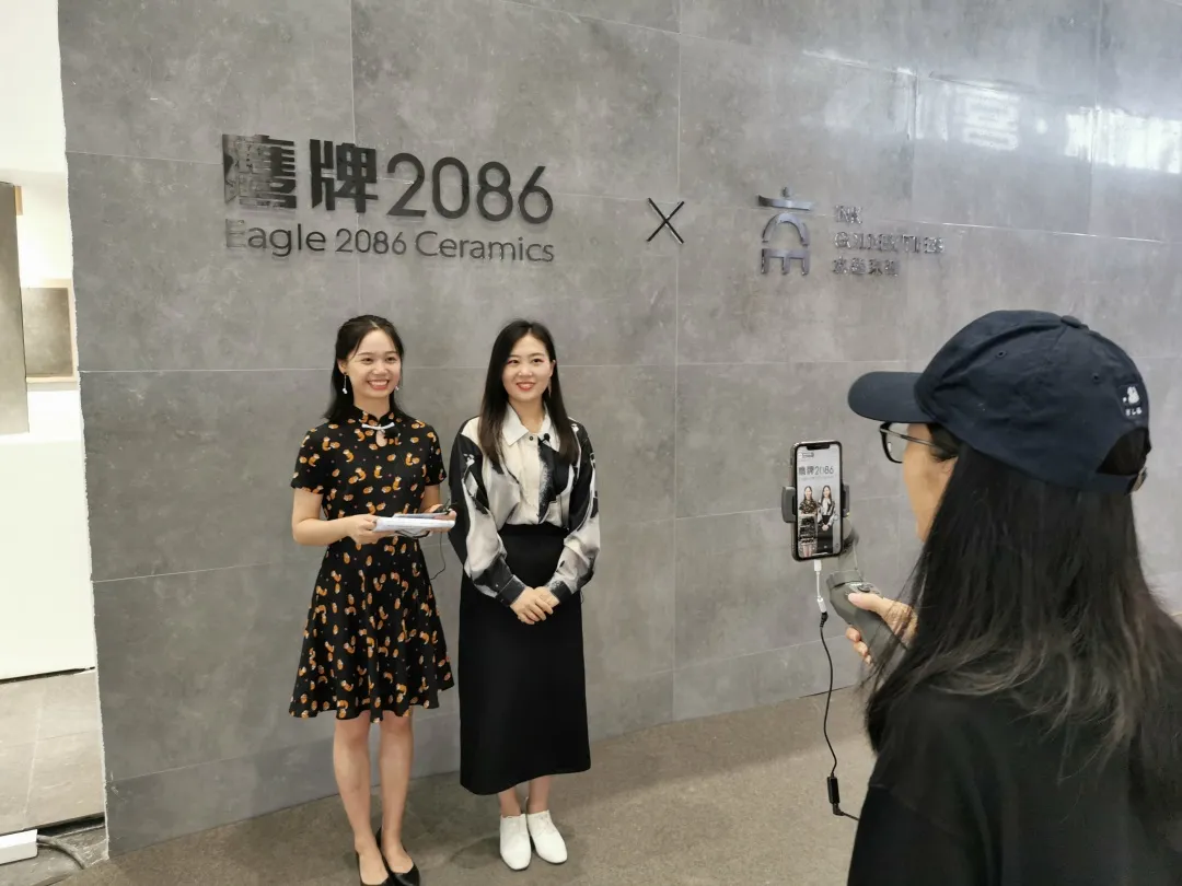 上午10:00,展馆还没有热起来,“水墨京砖文化馆”直播间就已经沸腾了。本次展会呈现了鹰牌2086年轻化品牌定位,运用创新直播形式线上逛展,给全国经销商以及不能到现场感受的观众朋友们,提供一个深度体验“水墨京砖文化馆”的平台,全程由鹰牌2086品牌方策划运营,两位小姐姐获得超多点赞哟!