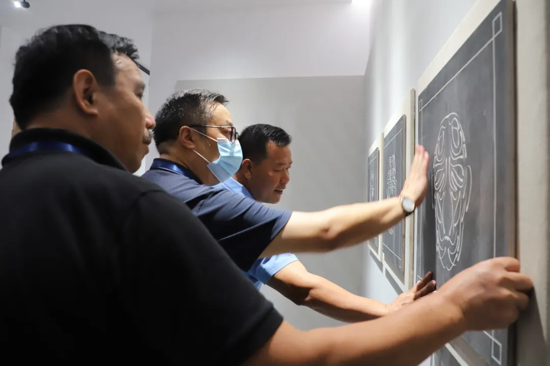 参观过程中,林总向梅书记一行介绍了“水墨京砖”与故宫金砖的渊源,参观了雅克·考夫曼先生的金砖艺术品,并阐述了鹰牌集团技术融合文化艺术的产品研发战略。