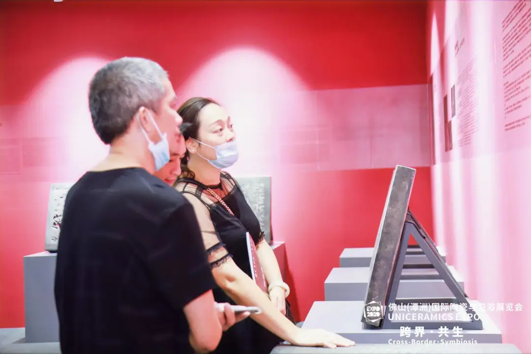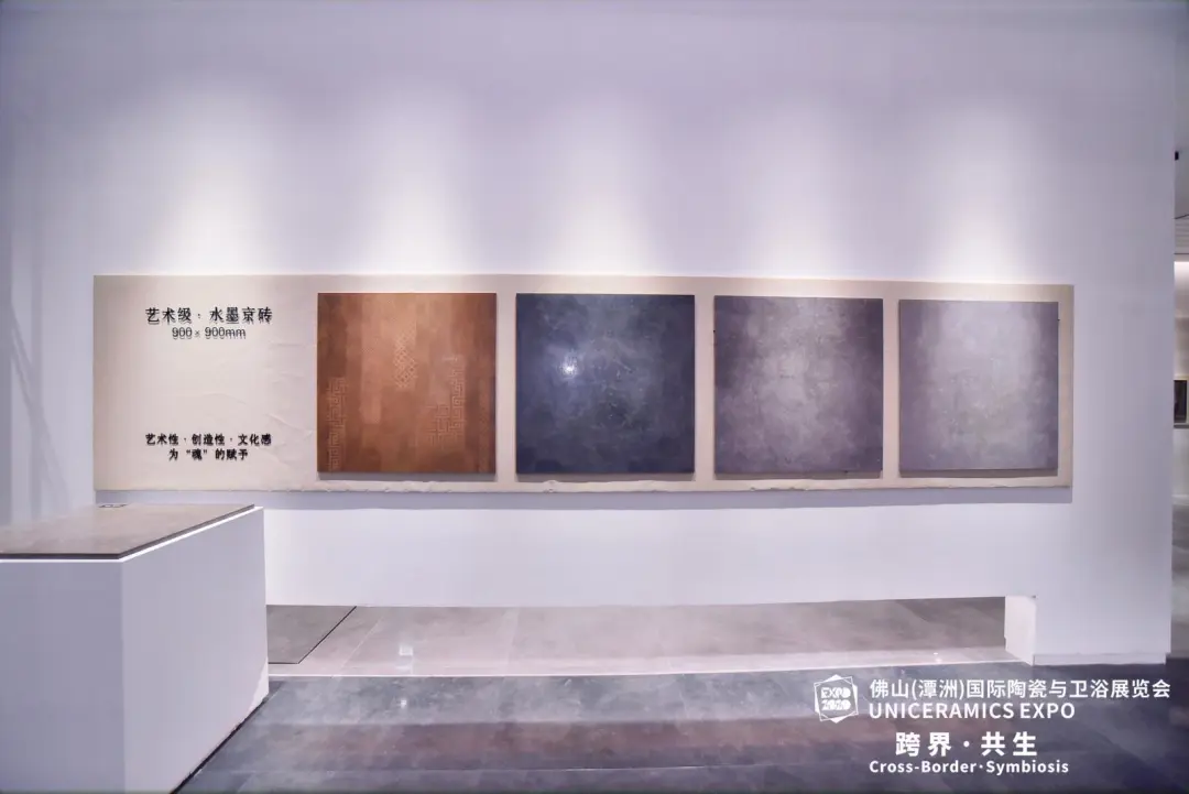 在水墨京砖产品区,陈总重点介绍了水墨京砖三代产品,从纪念版到收藏级,再到艺术级,经过研发升级已有4大规格14款产品,他表示,常规的陶瓷产品开发,都在围绕“功能性和装饰性”两个属性进行,而鹰牌2086早已注重产品的艺术性和文化感。建筑陶瓷与艺术陶瓷相联结的话题再次引发讨论。