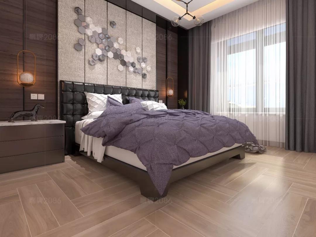 卧室的设计展现了木纹砖的多种使用方法,更呈现了不同空间感和色彩感的轻奢风格,棕色搭配紫色的神秘,白色+玫瑰金的高雅,高级灰搭配原木的温馨,生活就要与众不同。