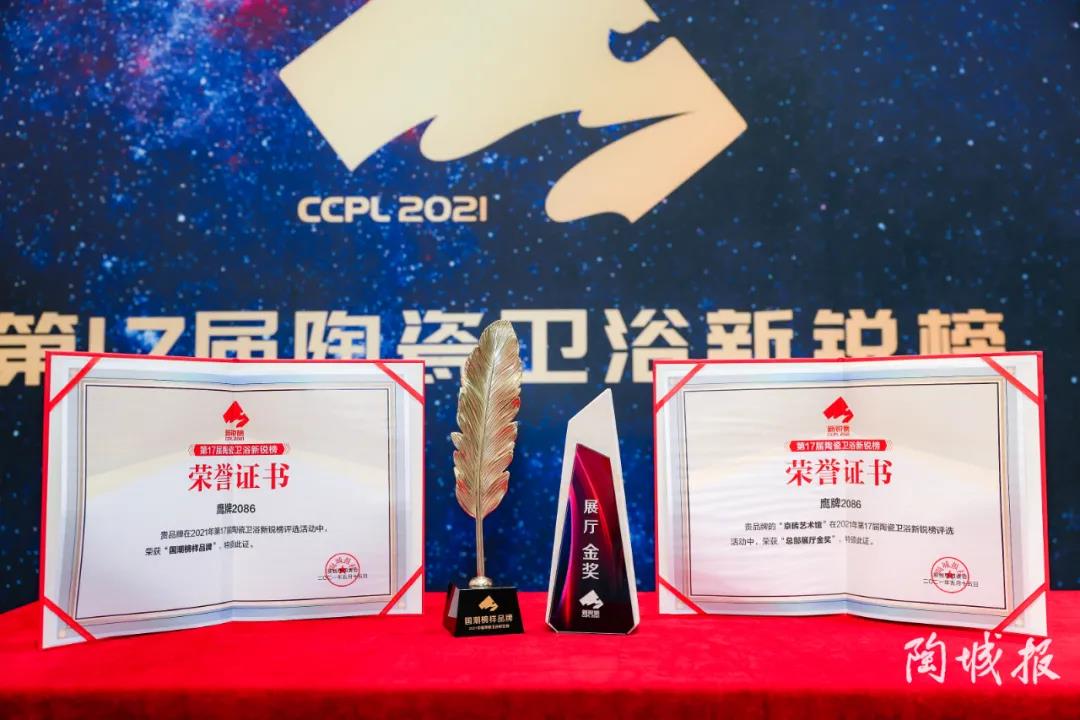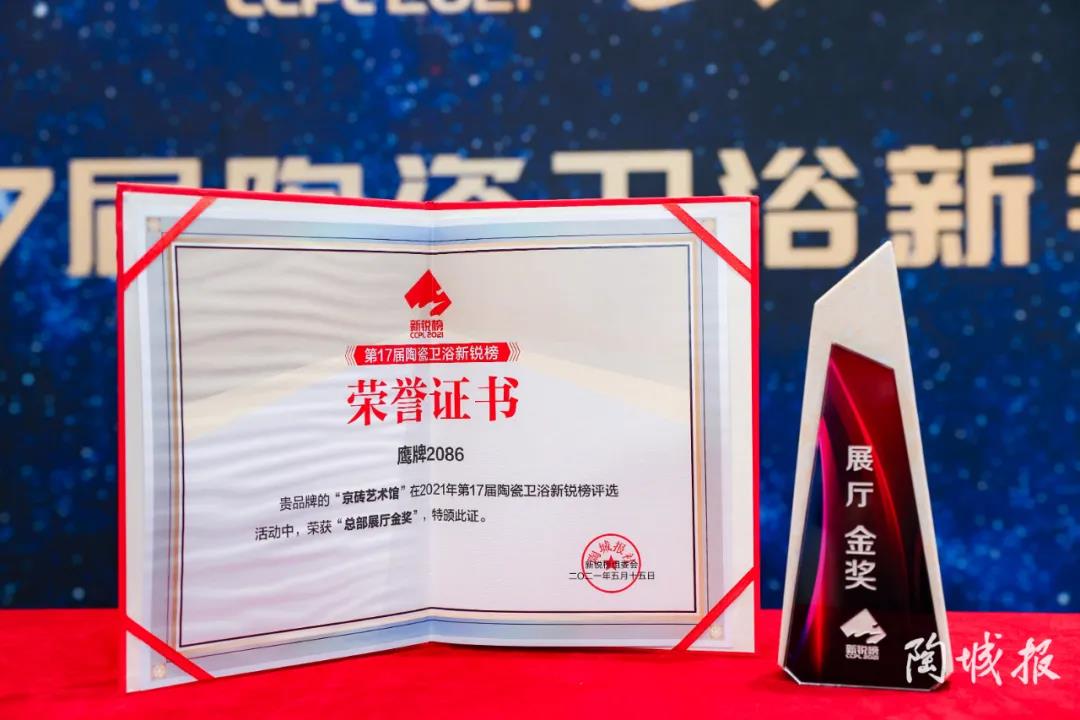 5月15日,“2021陶瓷卫浴领军品牌高峰论坛”暨“第17届新锐榜颁奖典礼”于佛山新媒体园隆重举行,陶瓷一线品牌鹰牌2086凭借品牌实力和“京砖艺术馆”荣获“国潮榜样品牌”和“总部展厅金奖”两项重量级大奖。