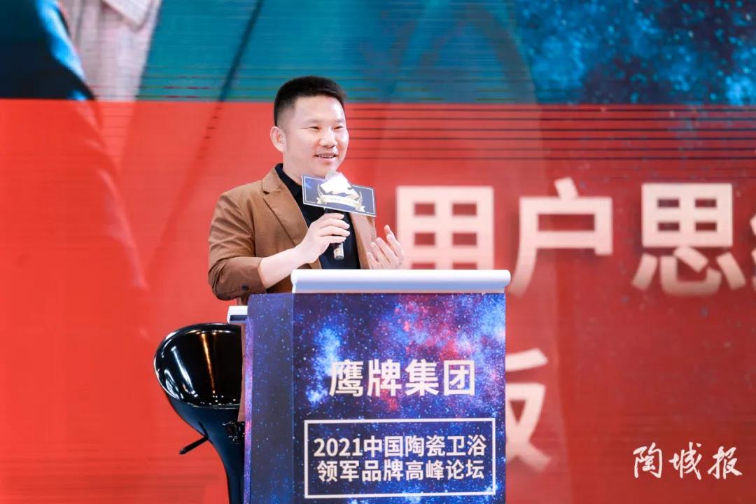 陶瓷十大品牌鹰牌2086总经理助理朱文强上台领奖并发表了获奖感言,朱总首先对主办方表示了感谢,同时表示:鹰牌2086一直在挖掘中国文化和陶瓷产品的融合,在这里向大家发出邀请,欢迎大家来“京砖艺术馆”打卡交流。