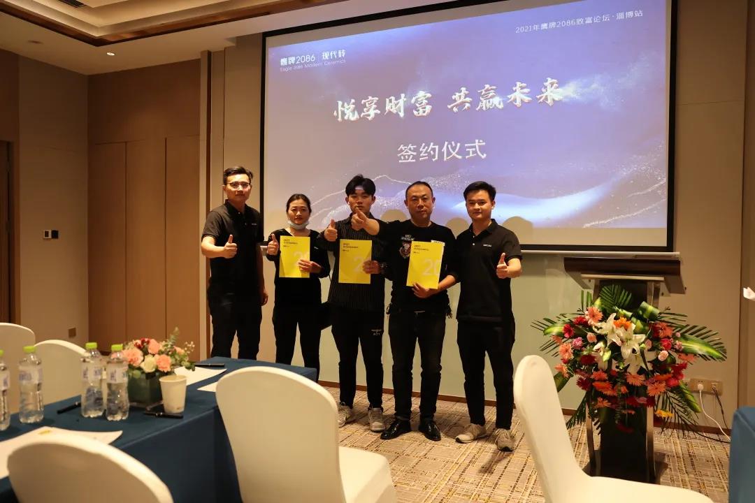 经过一系列的介绍和答疑,各位大咖对品牌已经有了深刻的理解和充分的信任,纷纷签订合约并宣读誓词,表现出勇往直前、拼搏向上的精神,与鹰牌2086一起踏上致富之道。