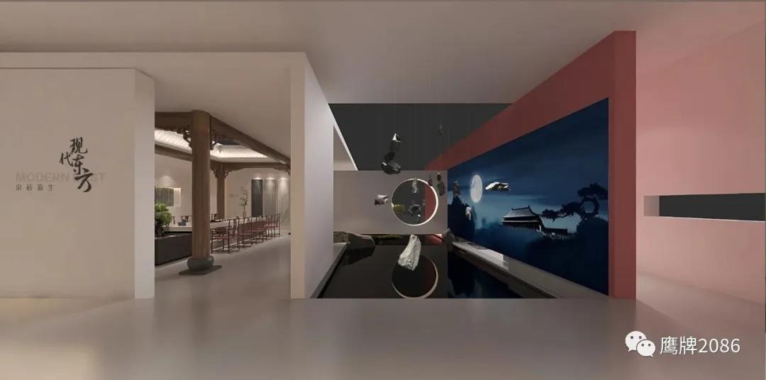 继2020潭洲展之后,陶瓷十大品牌鹰牌2086在同年广州设计周上,再次推出一个独立的“水墨京砖馆”展馆;2020年年底,于总部展厅重磅打造了一个“京砖艺术馆”,成为年度收官大作。