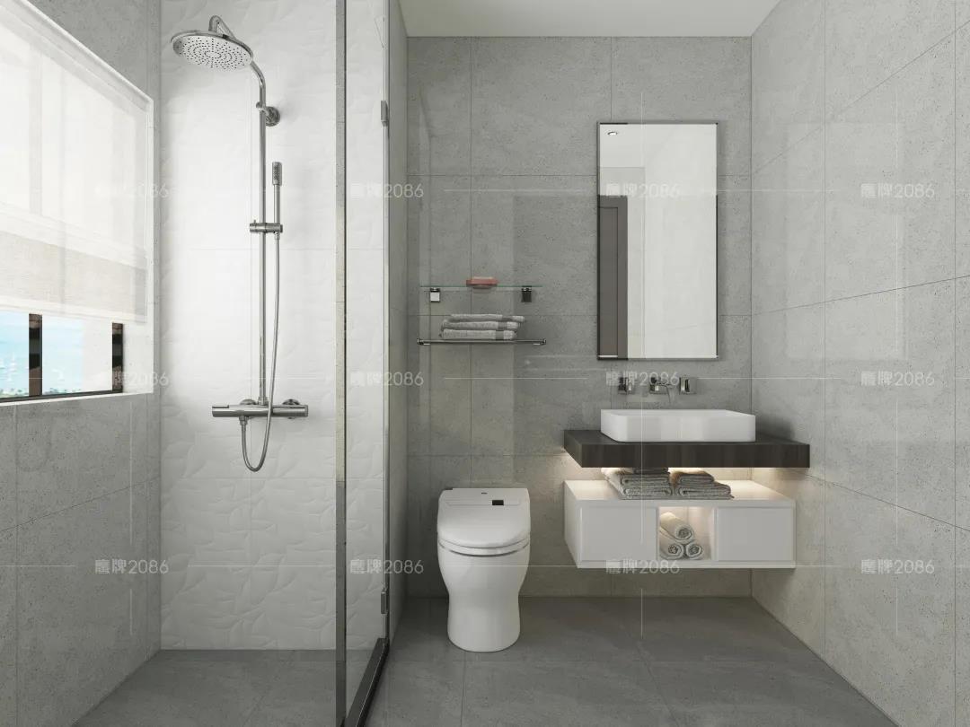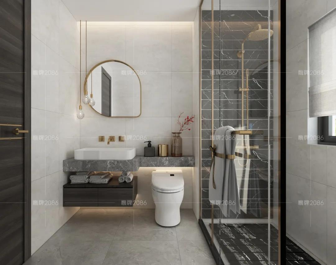 双卫浴空间采用合理的干湿分离设计,无论是黑色大理石瓷砖的趣味切割,还是利用缪斯系列模具花砖打造的灵动感,都让这个简单的空间富有活力,令人眼前一亮。