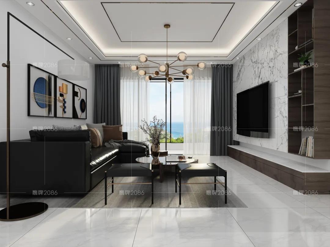 客厅大面积的白色基调,搭配一套高级黑色皮质沙发,既不会显得沉闷压抑,又不失端庄高级的质感。