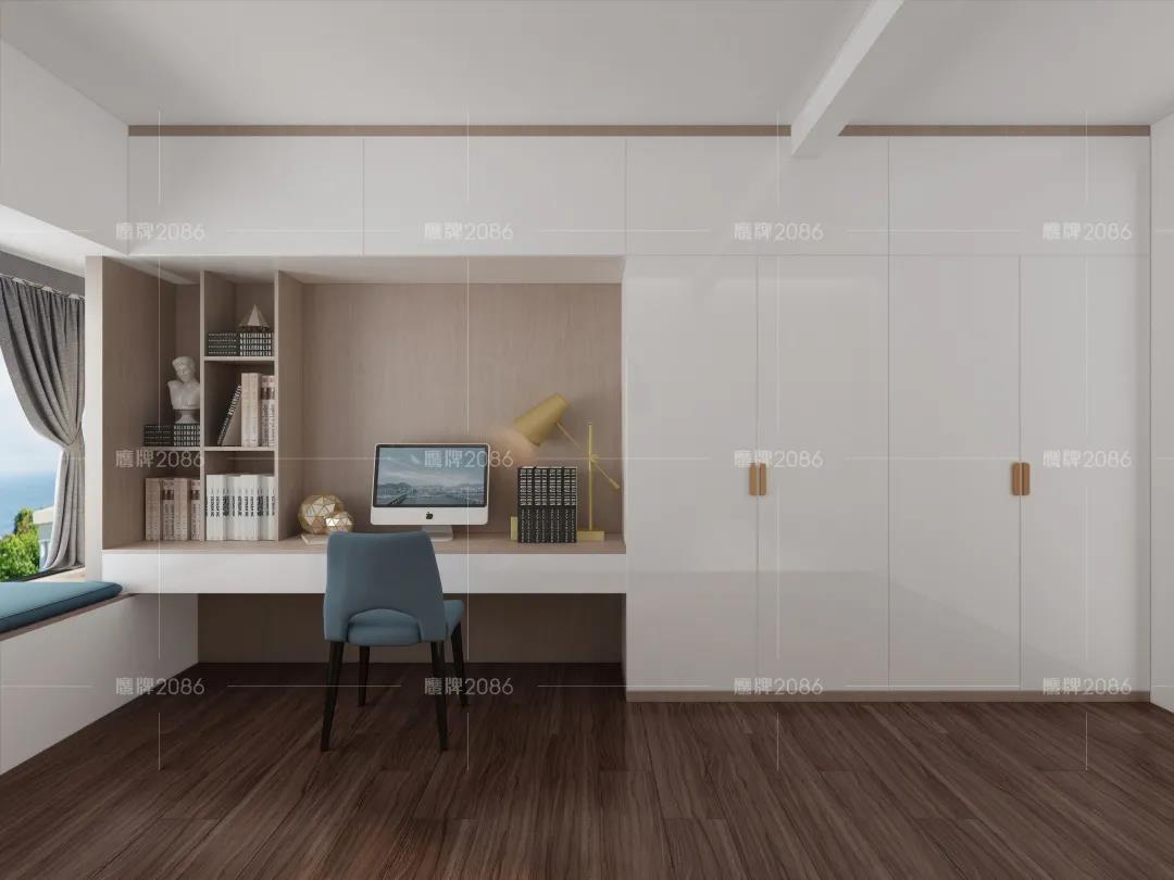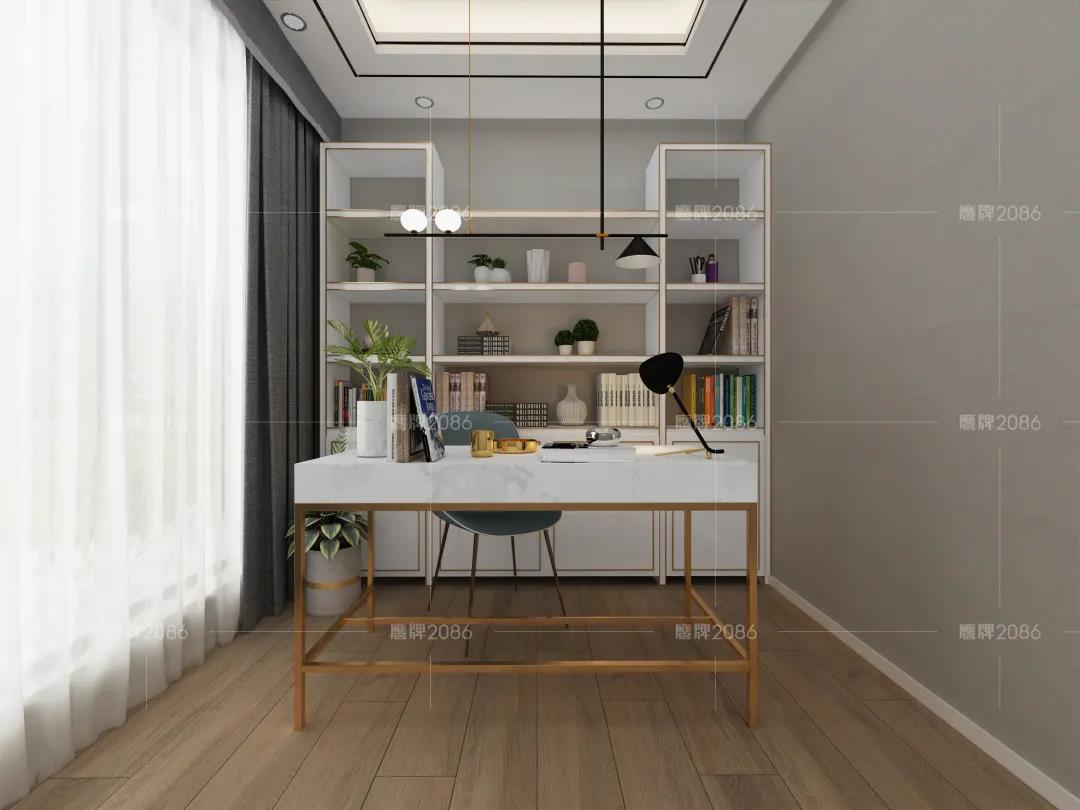 一张简约而有质感的岩板书桌,白色与木色的融和共生,为书房注入优雅大方的气质,色彩搭配上温馨自然,在阳光下沉浸知识世界,舒适惬意。