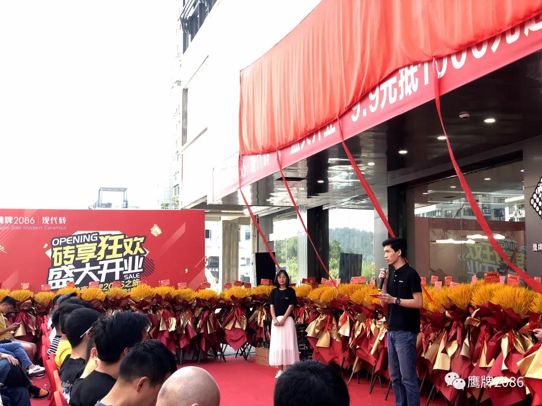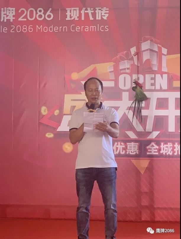 揭幕仪式完美进行,鹰牌2086总部运营部霍锦添和鹰牌2086龙泉店总经理蔡焕飞上台致辞,并表示:鹰牌2086现代砖进驻龙泉家居市场,将为龙泉市民提供更多高质量家装产品,相信在经销商与鹰牌2086总部的共同努力之下,鹰牌2086龙泉旗舰店一定能够取得辉煌业绩。