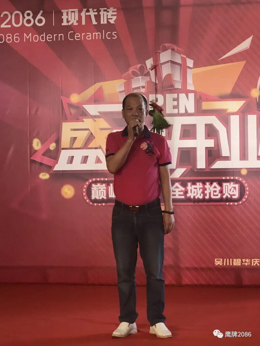 开业庆典上,茂名市计星陶瓷城董事长李亚棠先生、茂名市装饰协会秘书长梁秋宏先生、茂名市设计院院长杨旭凡先生、鹰牌2086华南大区总监吴岳洲先生、茂名鹰牌2086营销中心总经理陈广先生参与致辞,为鹰牌2086茂名旗舰店致以衷心的祝福和美好的期盼。