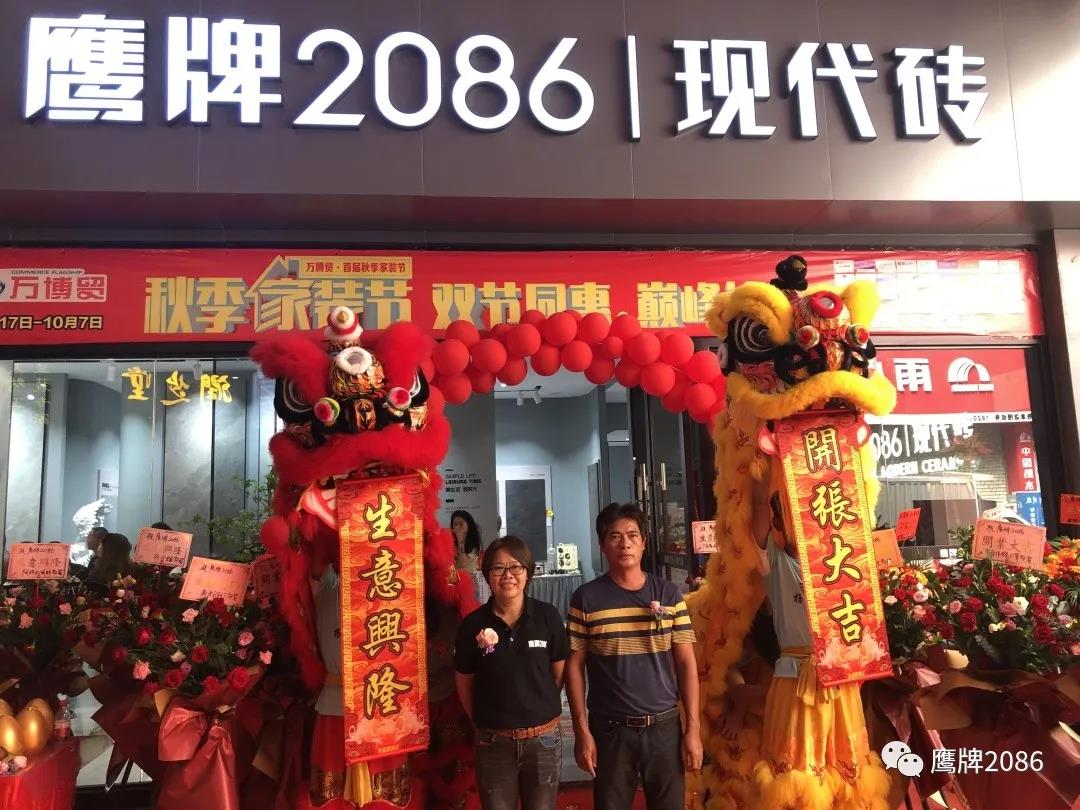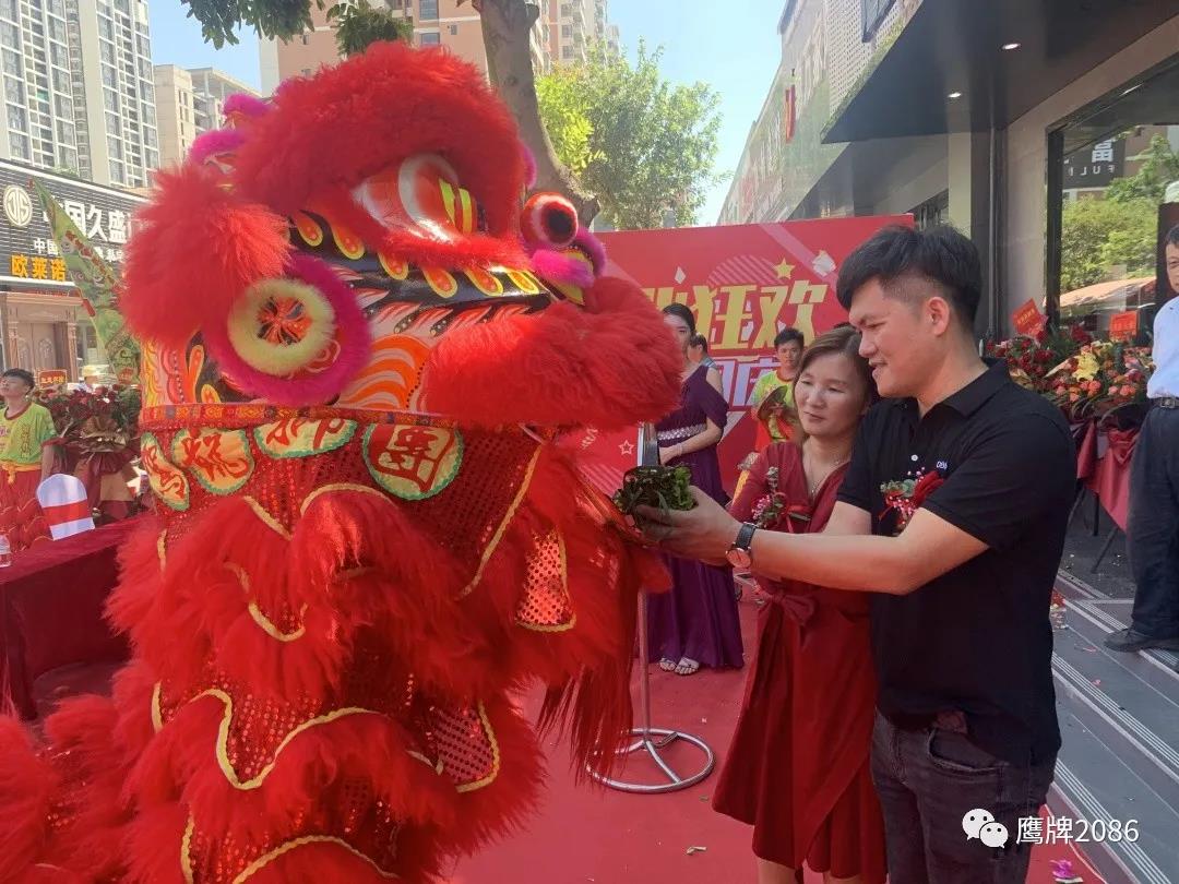 龙腾狮舞送吉祥,9月27日,鹰牌2086茂名旗舰店盛大开业!茂名市计星陶瓷城董事长李亚棠先生、茂名市装饰协会秘书长梁秋宏先生、茂名市设计院院长杨旭凡先生、茂名市水工装饰协会会长陈权汉先生、鹰牌2086华南大区总监吴岳洲先生、茂名市粤剧团原团长陈俊男先生、珠海市实长贸易有限公司陈盛高先生、茂名鹰牌2086营销中心总经理陈广先生、茂名鹰牌2086营销中心总监梁敏莲女士等一众领导嘉宾出席了开业盛典,共同见证喜庆时刻。