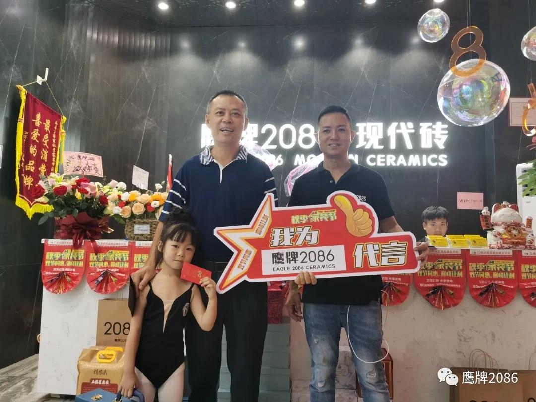 9月25日,鹰牌2086吴川旗舰店盛大开业,万博贸家居建材商业中心总经理万家杰先生、吴川覃巴镇高岭管区书记何亚春先生、鹰牌2086华南大区销售总监吴岳洲先生、吴川鹰牌2086总经理何玮玫女士、吴川鹰牌2086业务经理陈观华先生、吴川鹰牌2086设计经理陈宇谦先生等领导嘉宾出席了开业盛典。