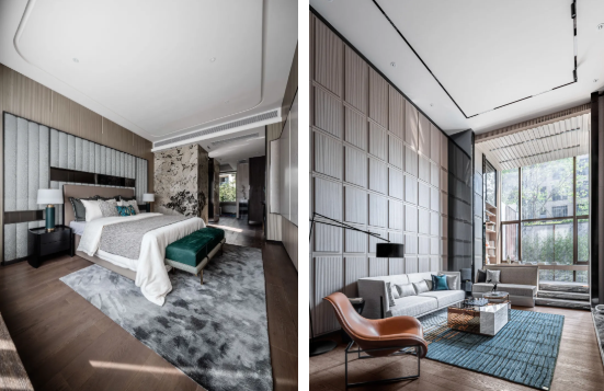 设计师按照惬意与自由的方式安置围坐,成为主人住在这里与爱人、挚友地方, 即使一个人独处,看书或是发呆,也是温情的。在简单与复杂之间找到平衡,通 过平衡与自然的关系,用心去呈现。