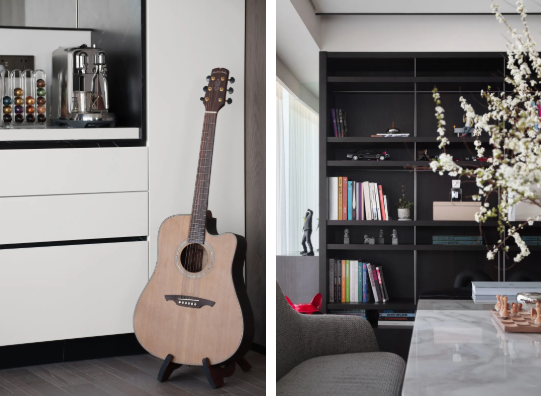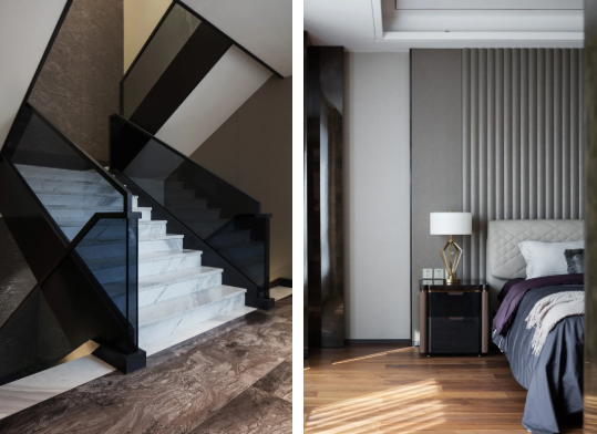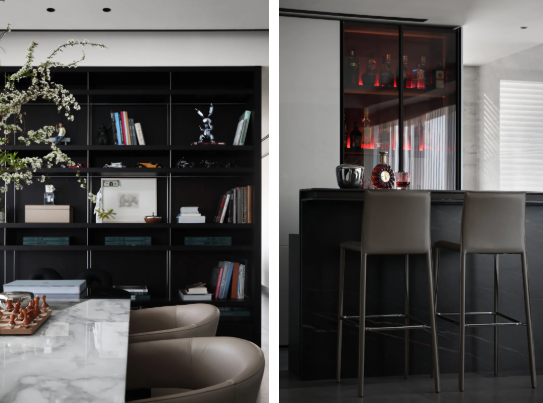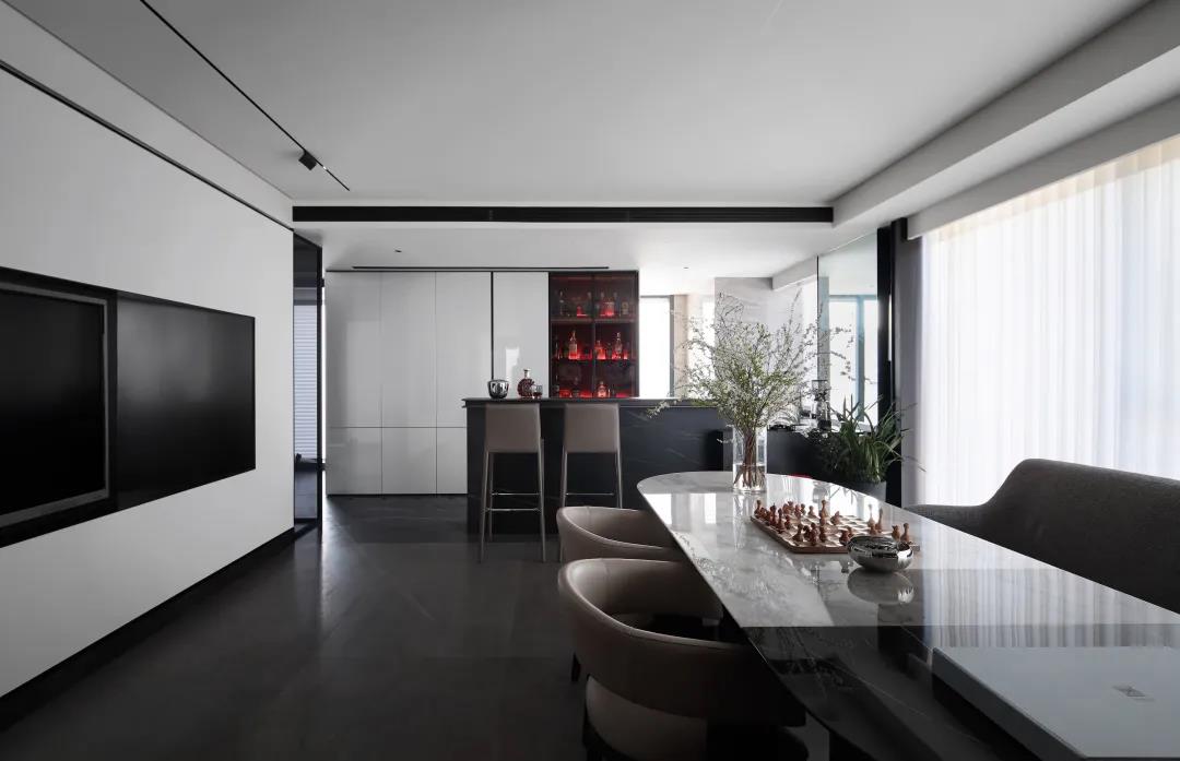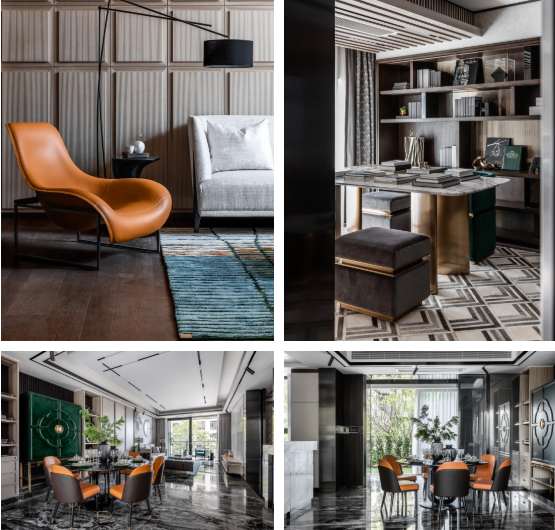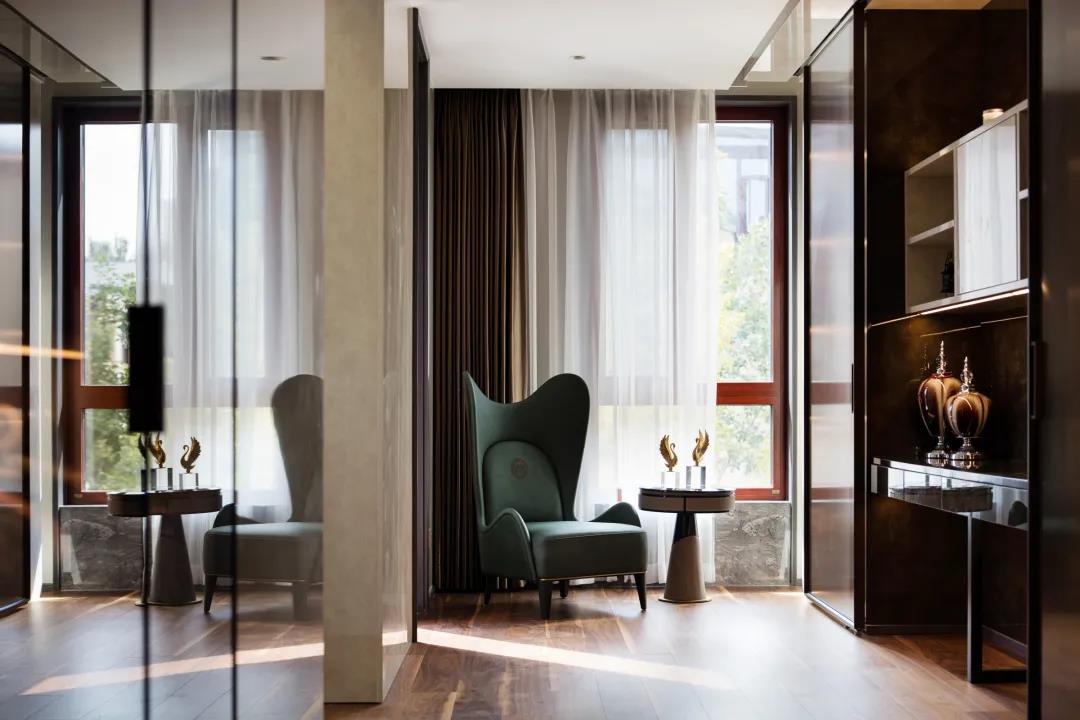 空间令人感受到一种丰富的简约,有着豪奢的风骨,在传统与现代之间,折射出 一种雅致。设计也与当代时尚生活模式相接轨,轻松自在地打造出生活感与美学 感的巧妙平衡。
